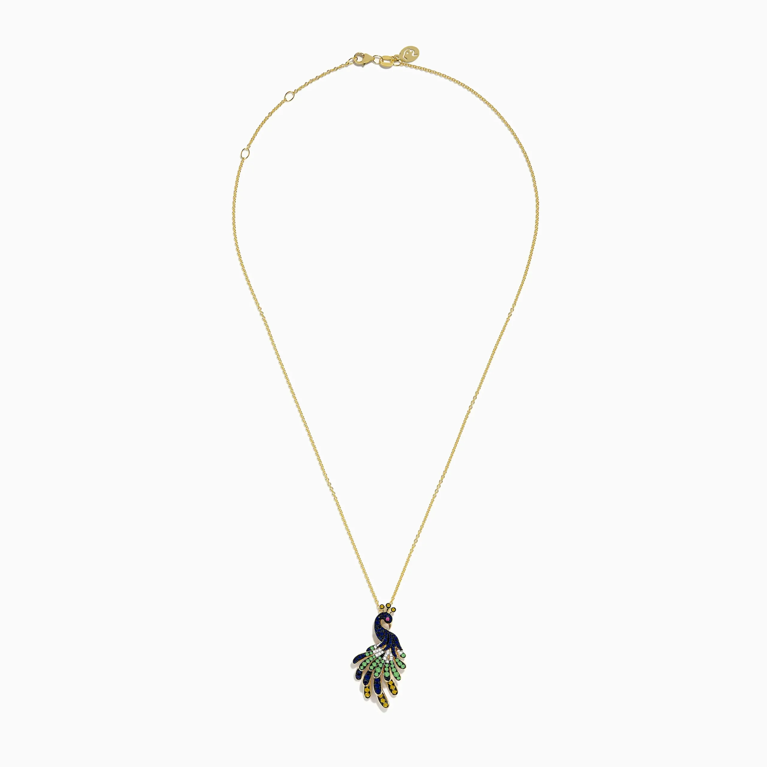 Safari 14K Yellow Gold Multi Color Sapphire and Diamond Peacock Pendant