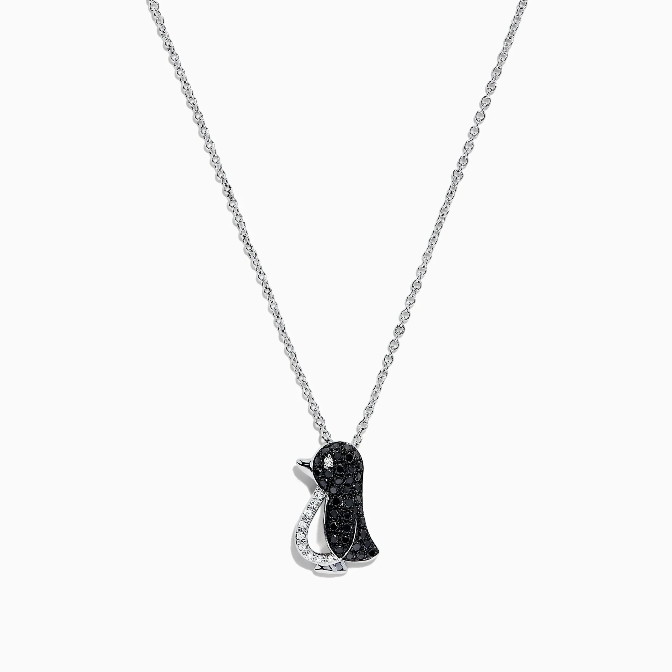 Effy Safari Sterling Silver Black and White Diamond Penguin Pendant, 0.31 TCW