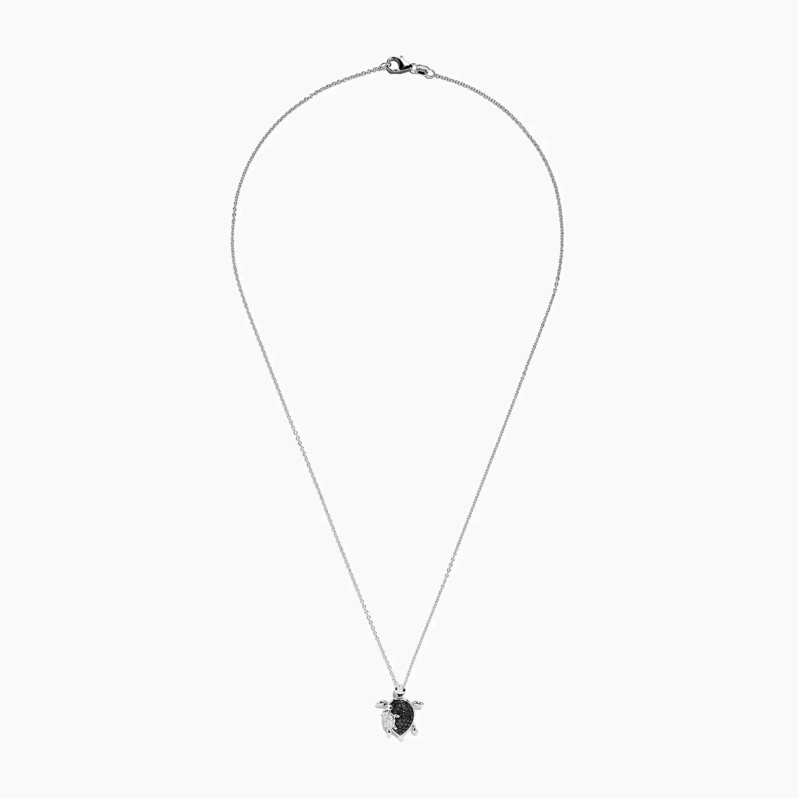 Effy Safari Sterling Silver Black and White Diamond Turtle Pendant, 0.32 TCW