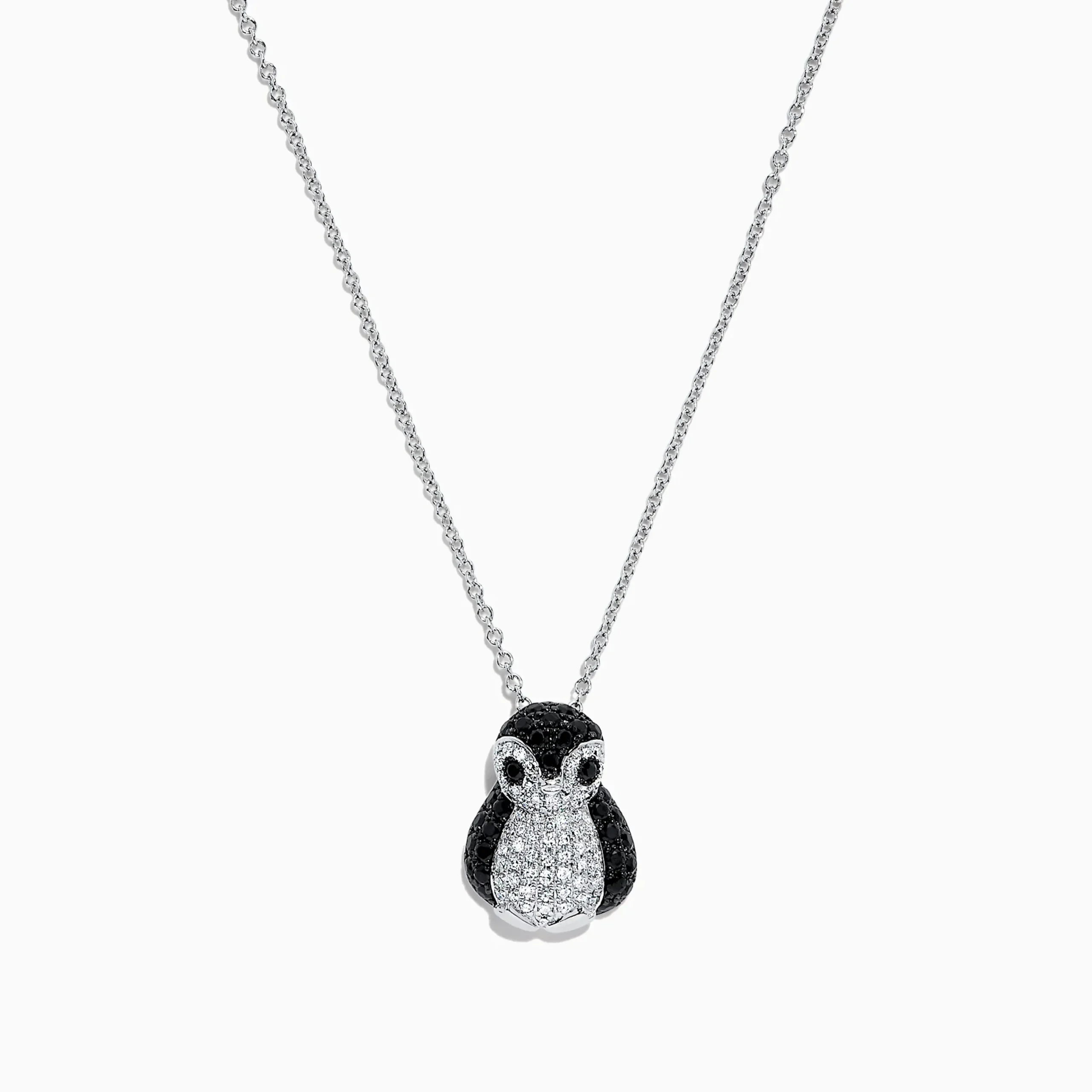 Effy Safari Sterling Silver Diamond and Black Sapphire Penguin Pendant, 1.03 TCW