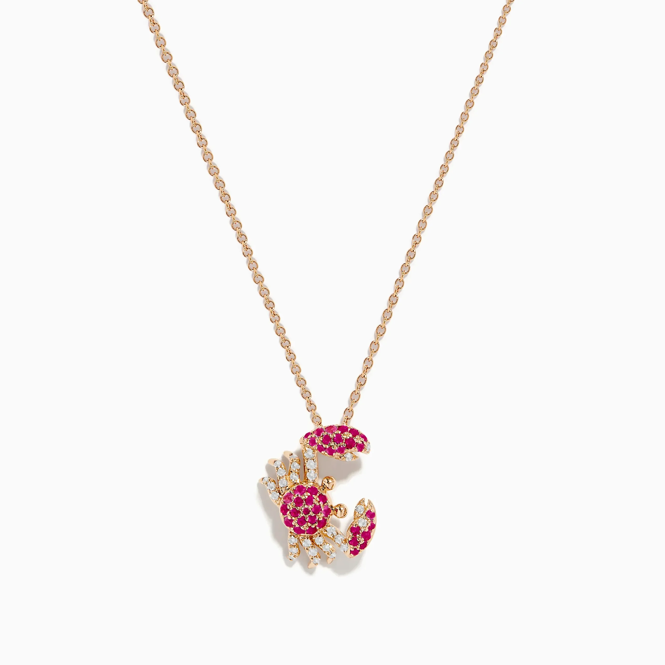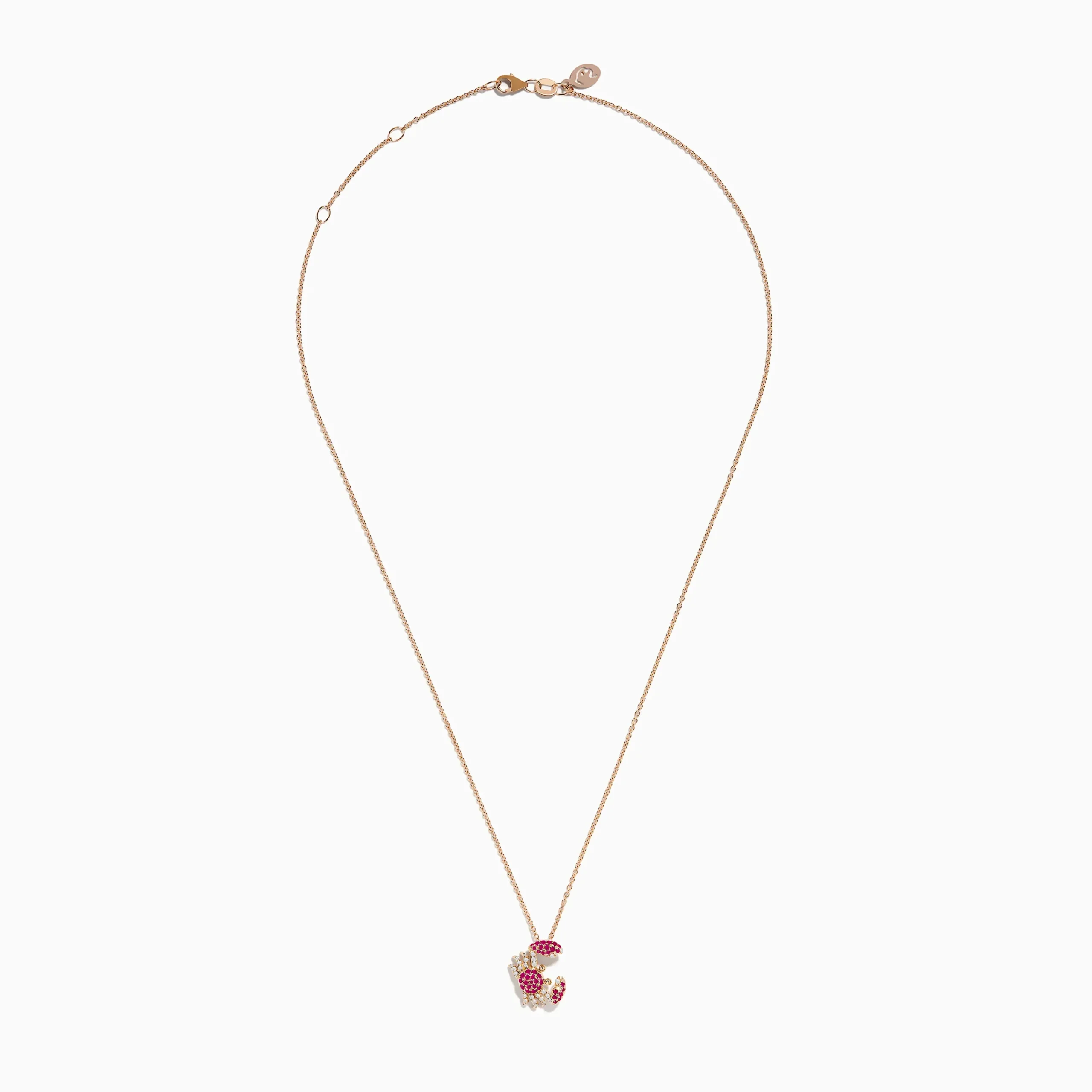 Seaside 14K Rose Gold Pink Sapphire and Diamond Crab Pendant