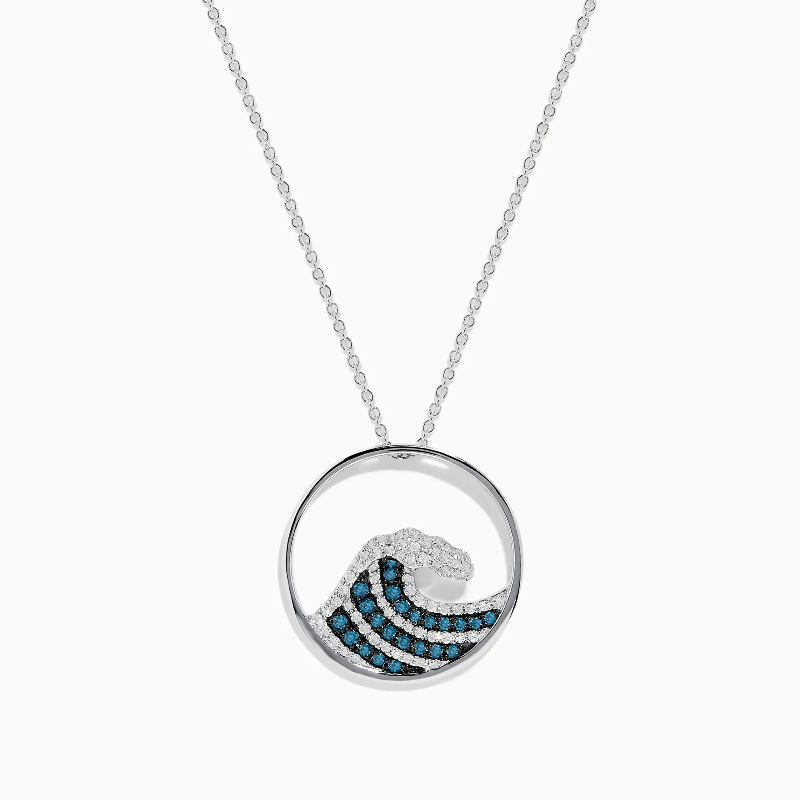 Effy Seaside 14K White Gold Blue and White Diamond Wave Pendant