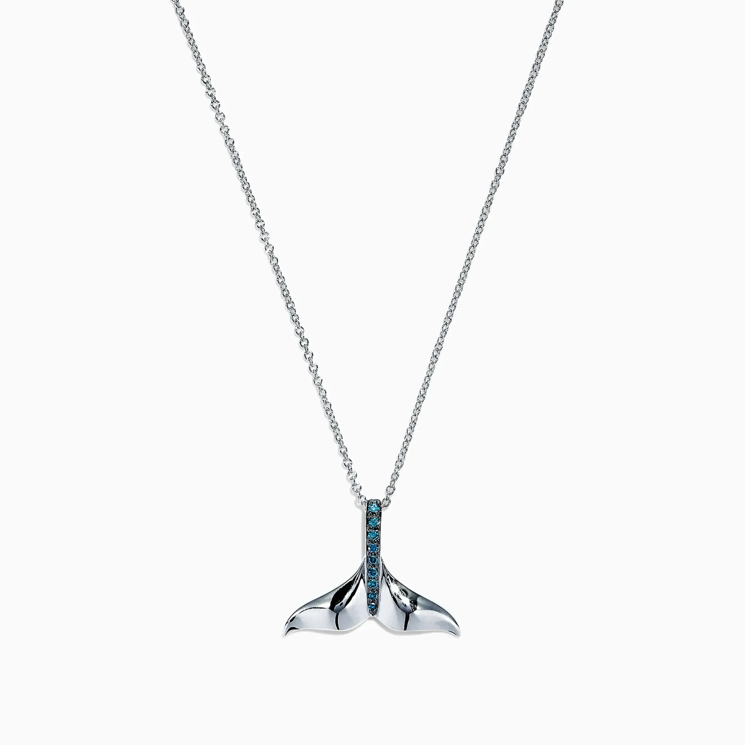 Effy Seaside 14K White Gold Blue Diamond Whale’s Tail Pendant, 0.05 TCW