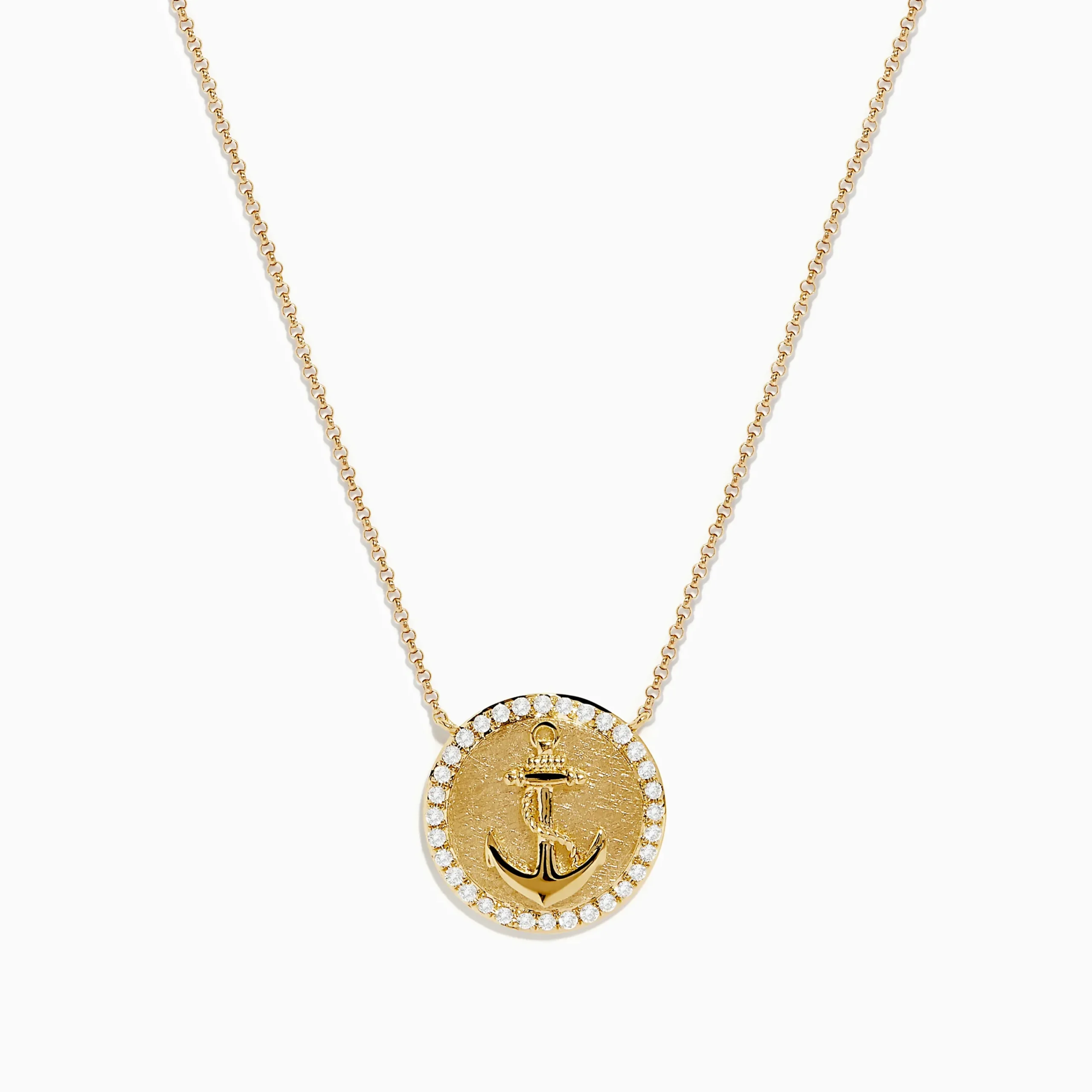 Metal:14K Gold Metal Color:YellowStone: Round Diamond 0.24Seaside 14K Yellow Gold Diamond Anchor Necklace