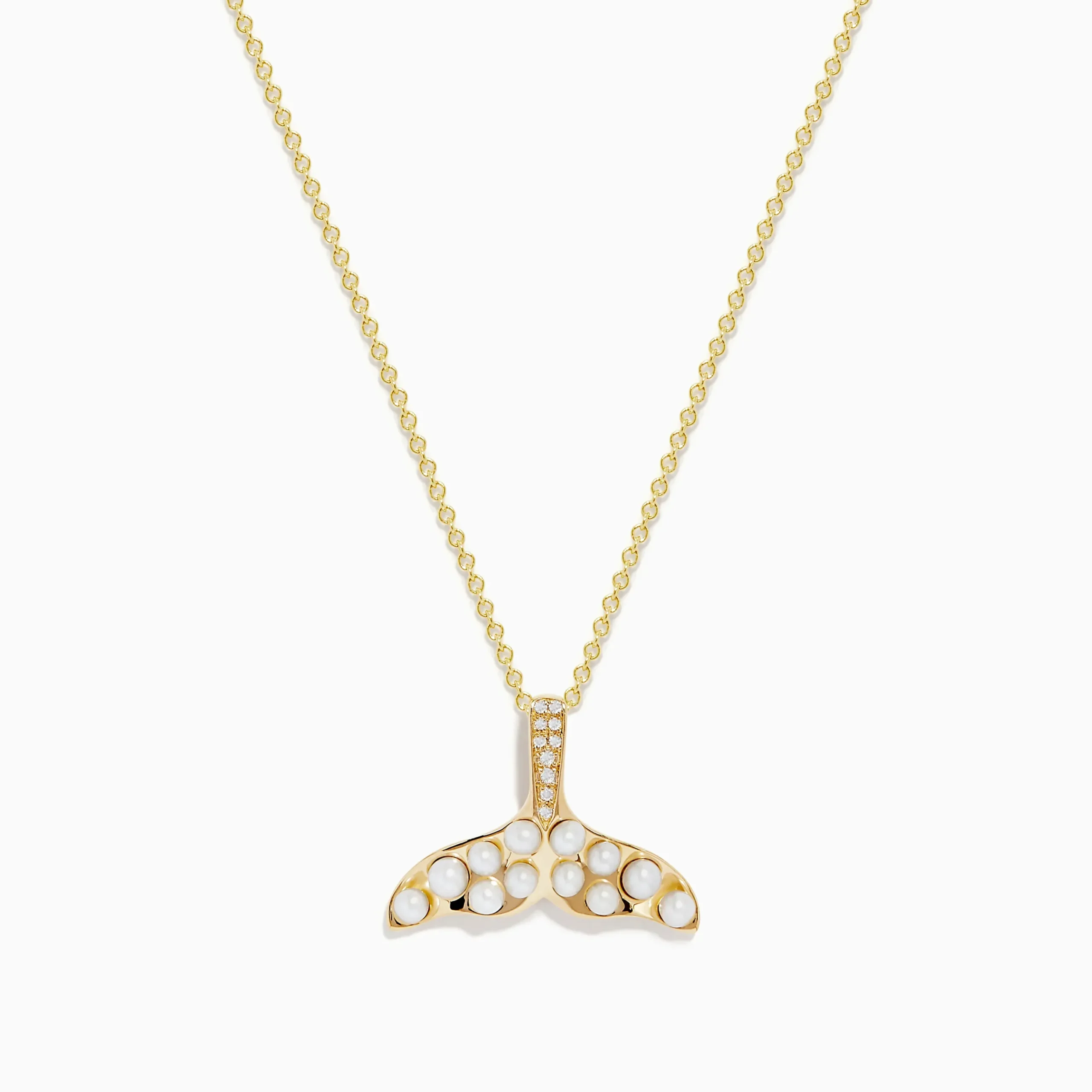Effy Seaside 14K Yellow Gold Fresh Water Pearl & Diamond Tale Pendant
