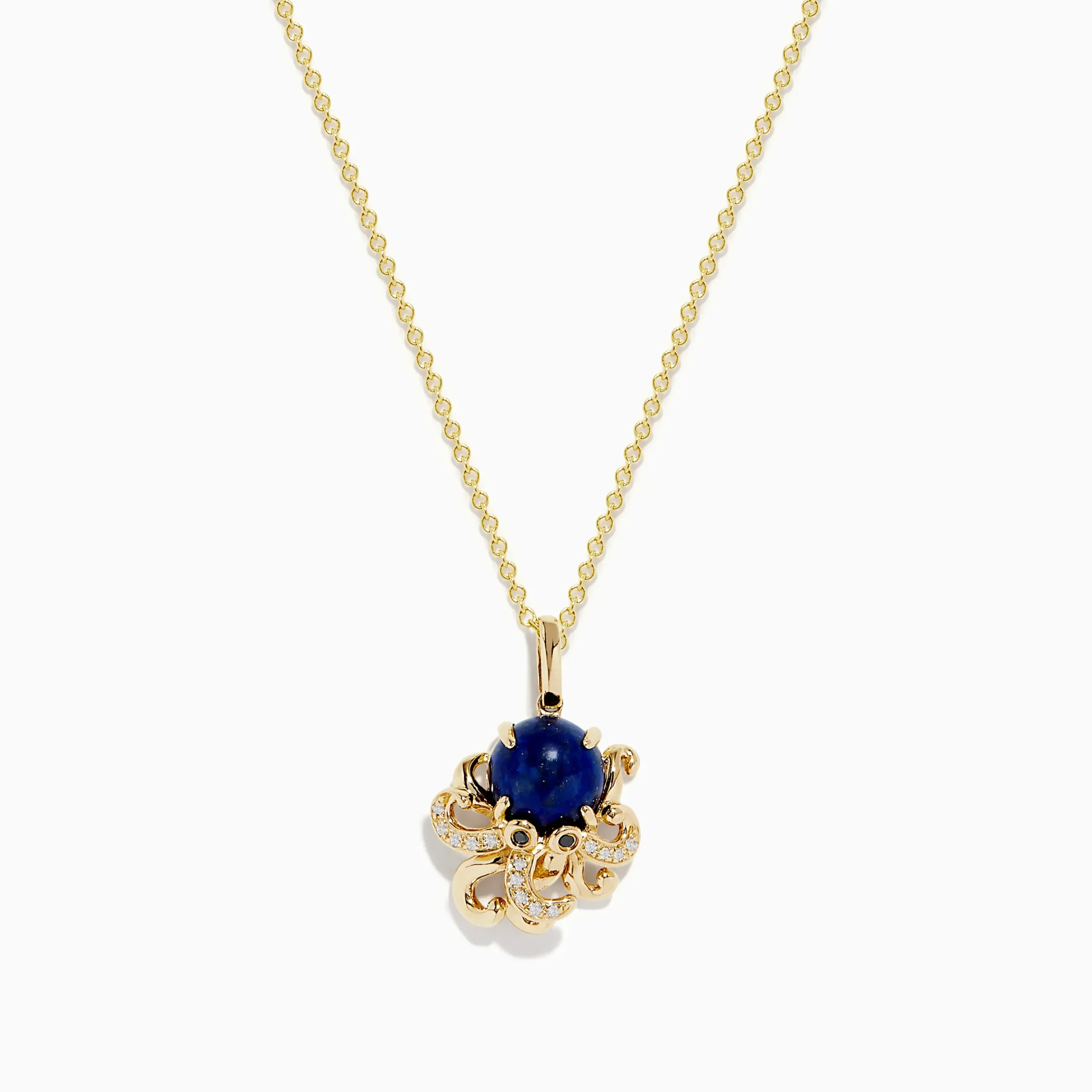 Effy Seaside 14K Yellow Gold Lapis Lazuli Octopus Pendant