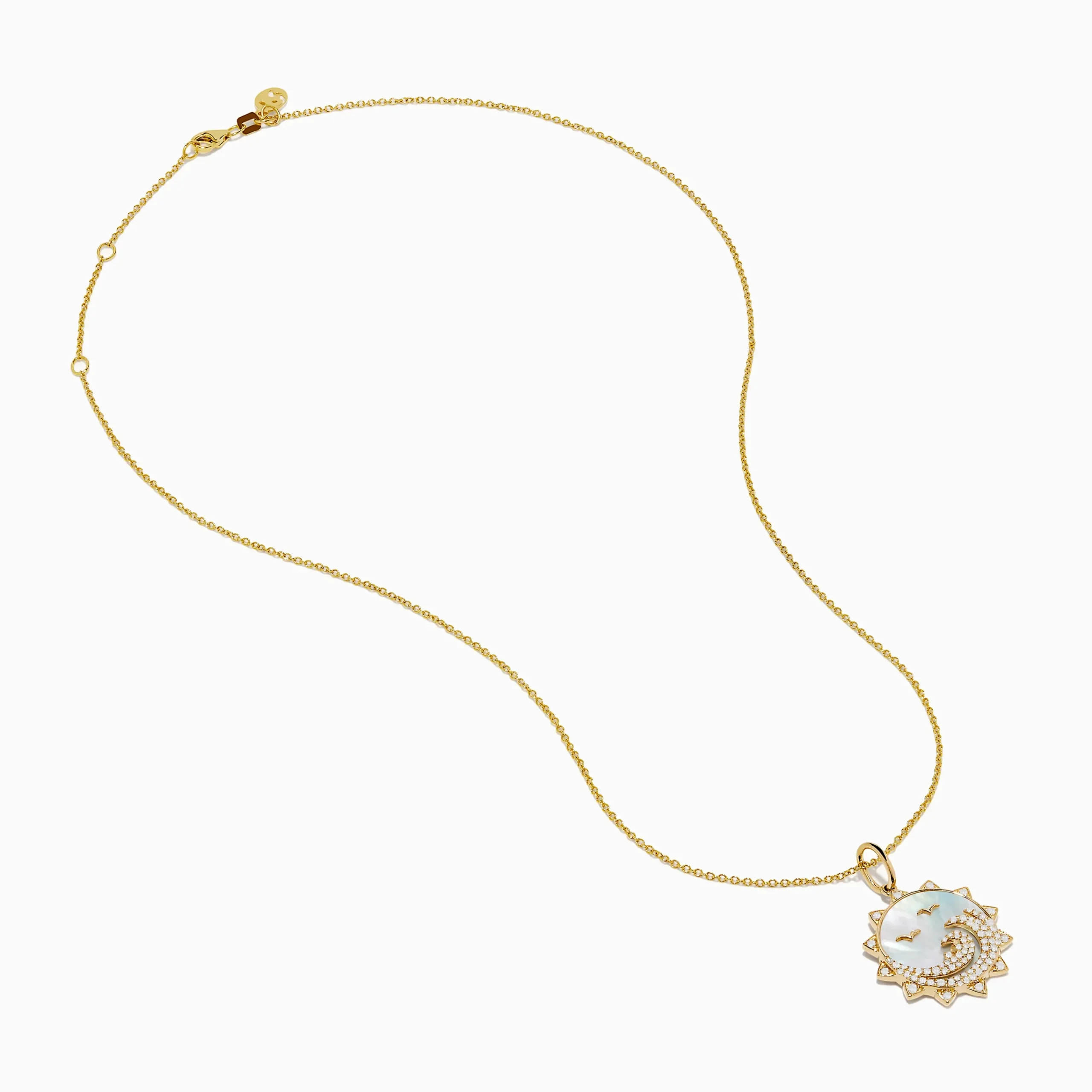 Seaside 14K Yellow Gold Mother Of Pearl and Diamond Bird and Sea Pendant