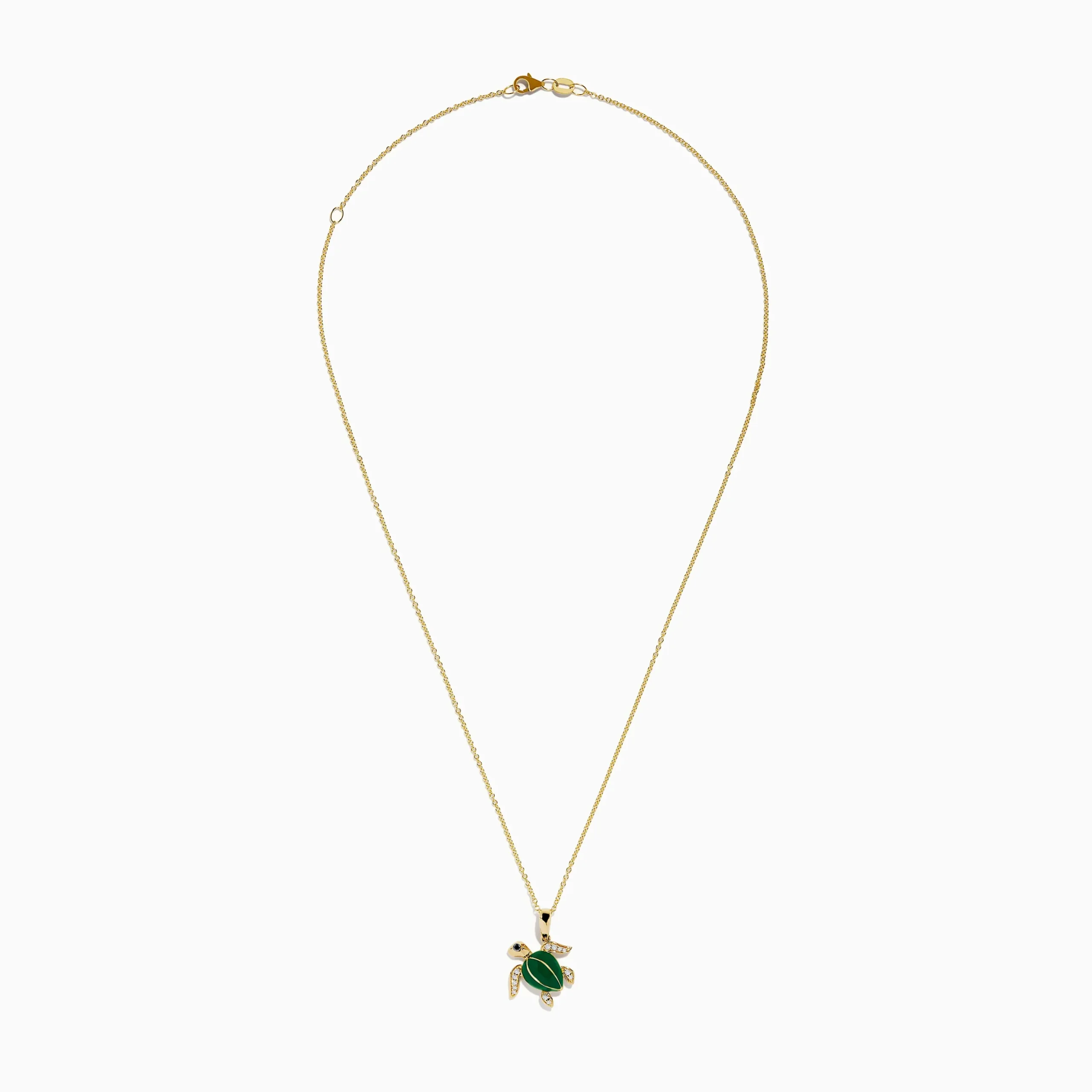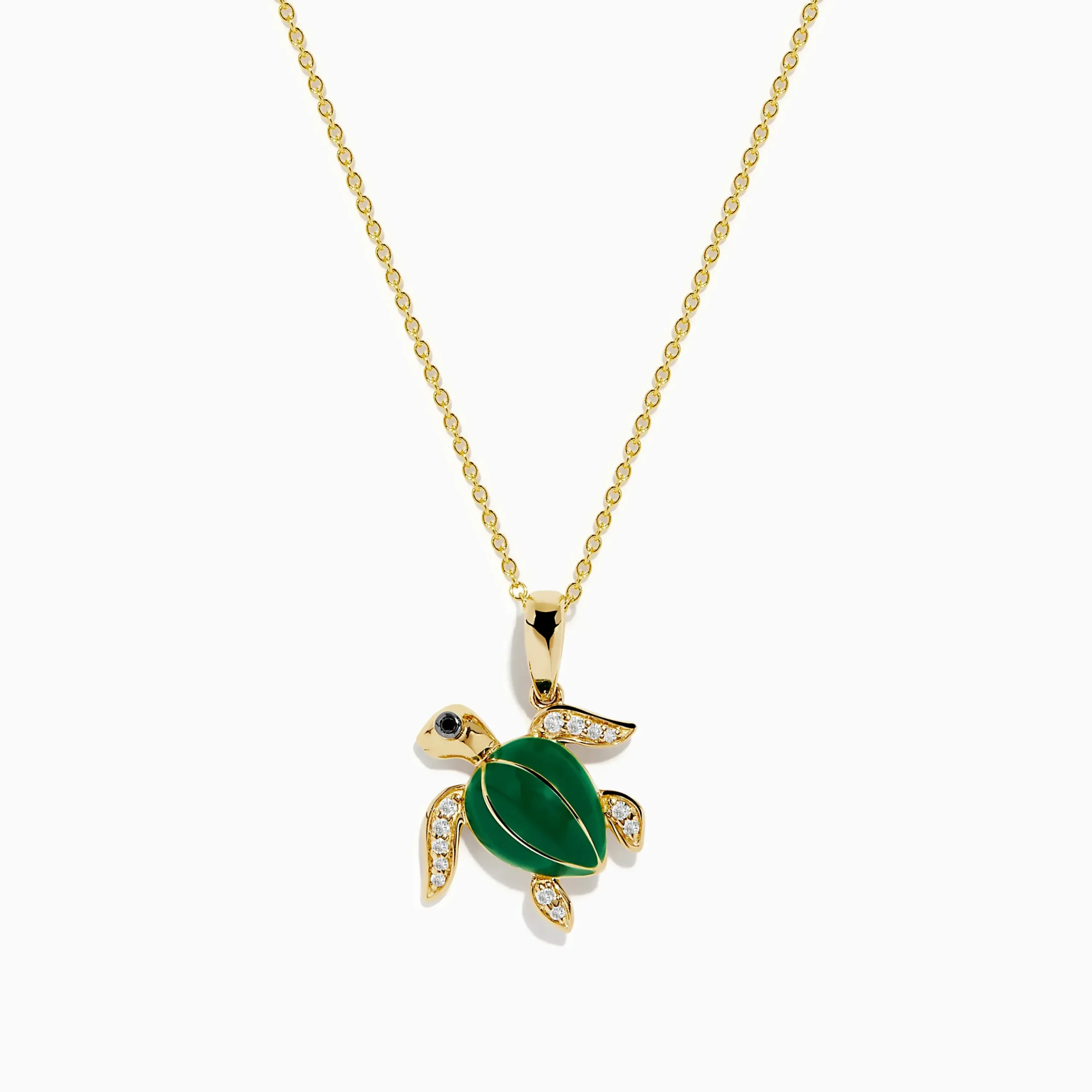 Seaside 14K Yellow Gold White and Black Diamond Enamel Turtle Pendant