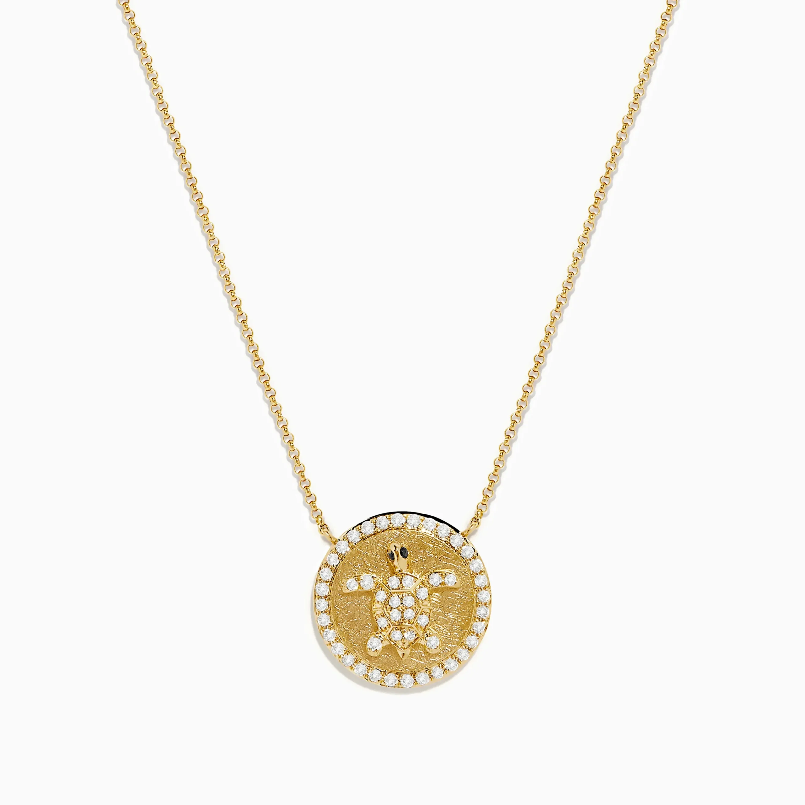 Seaside 14K Yellow Gold White and Black Diamond Turtle Necklace