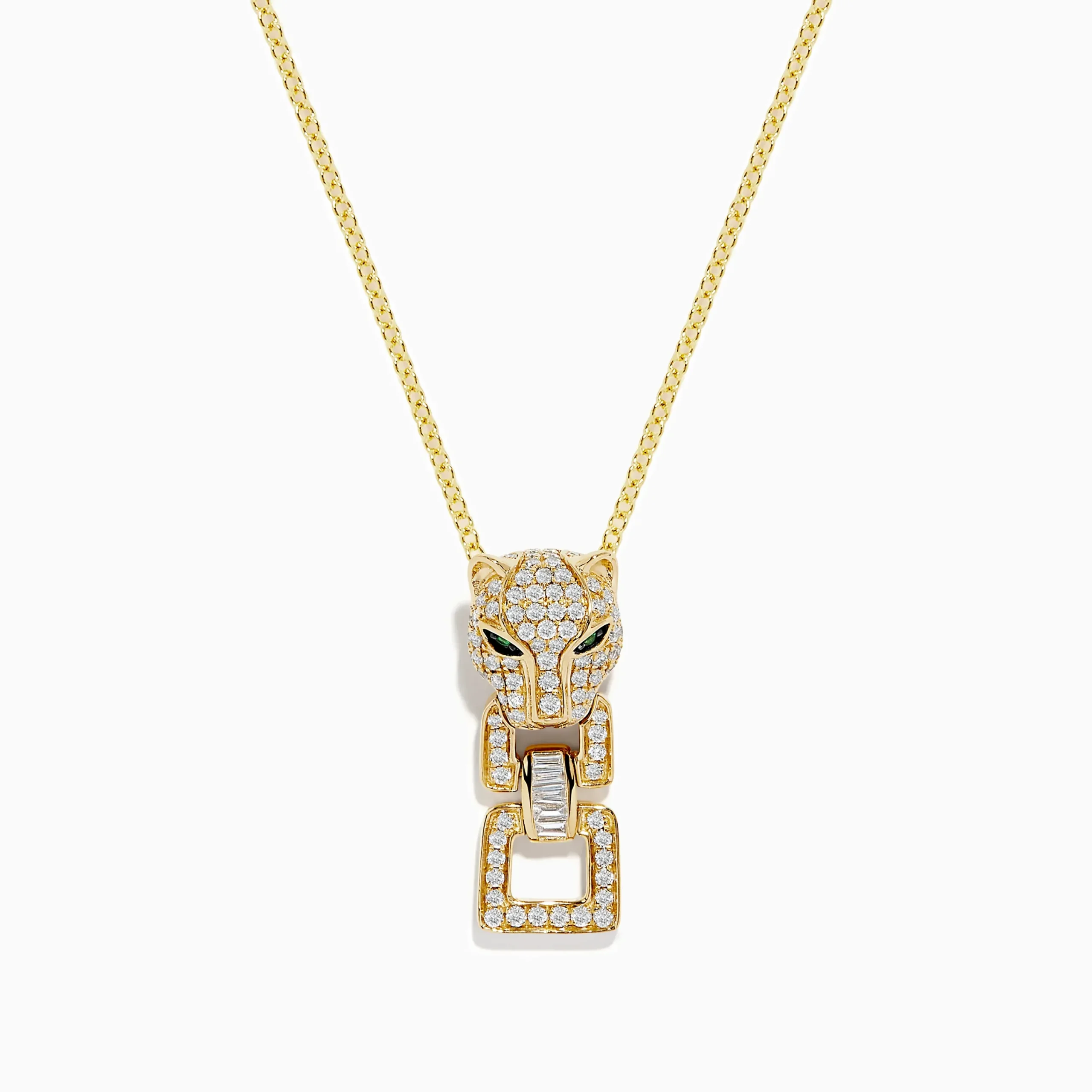 Signature 14K Yellow Gold Emerald and Diamond Panther Pendant
