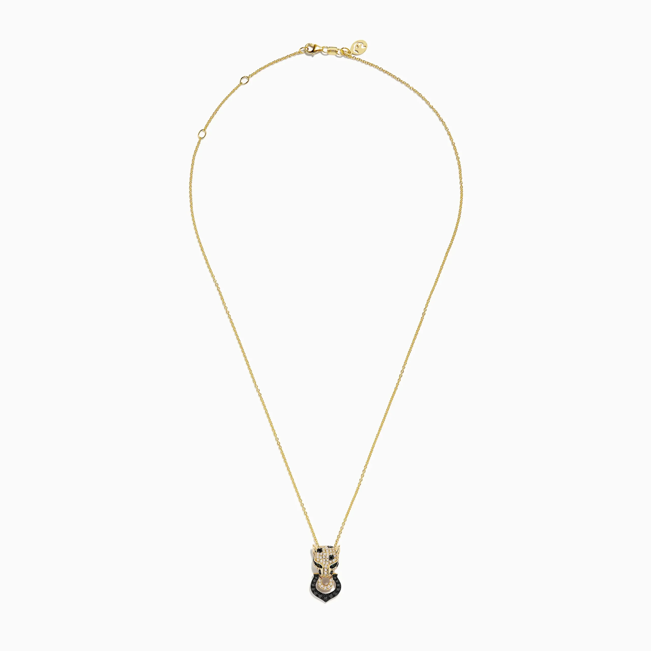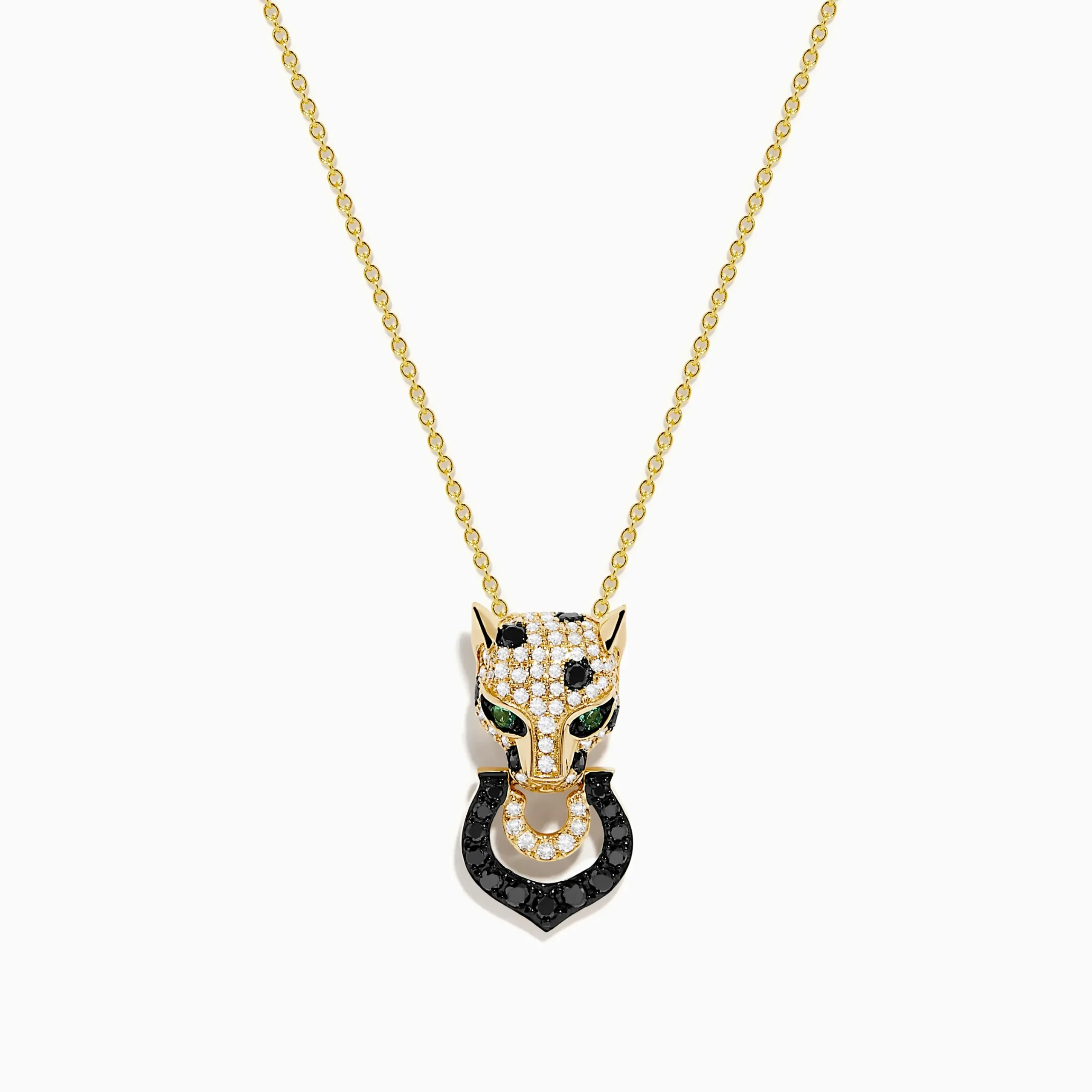 Signature 14K Yellow Gold White and Black Diamond Panther Pendant