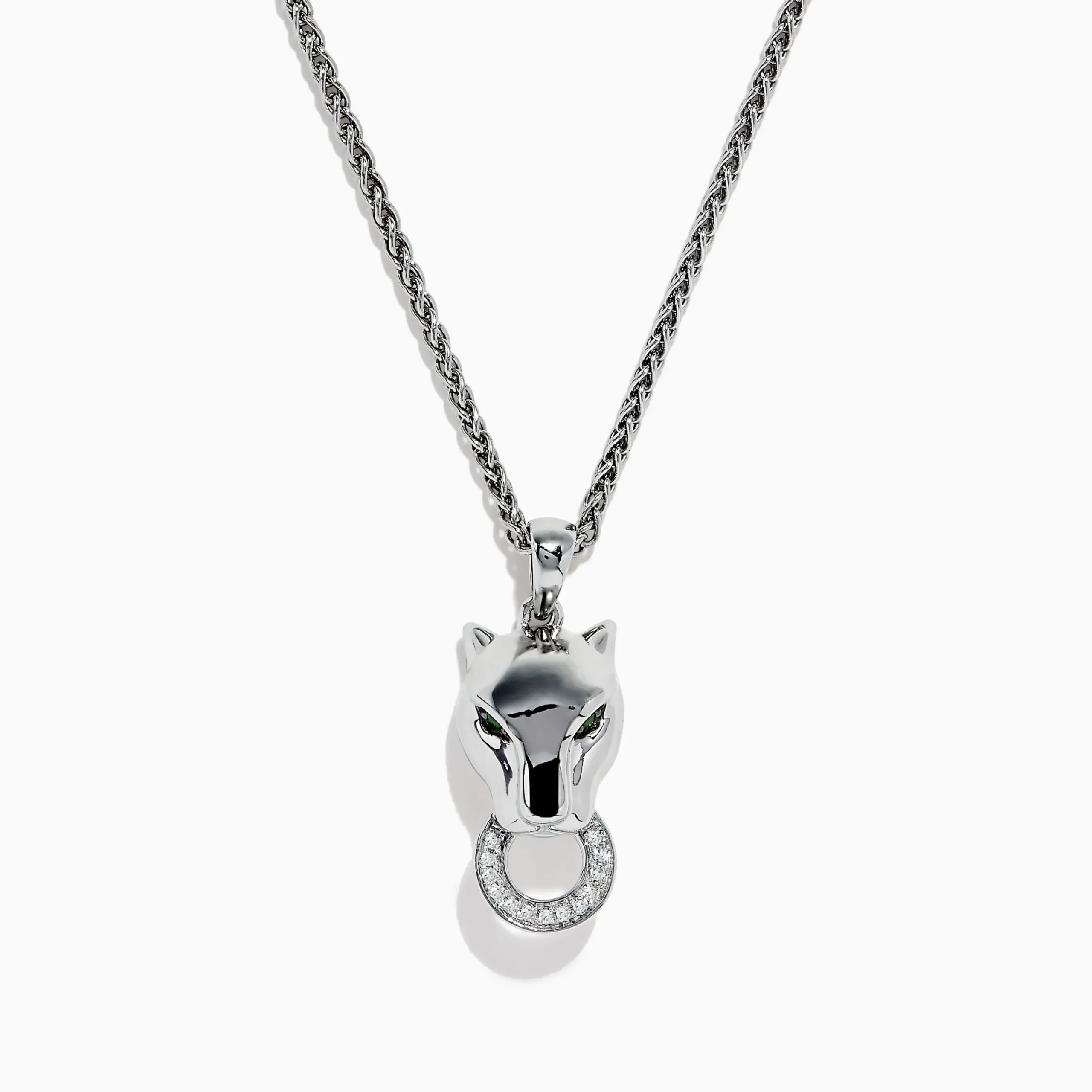 Signature Sterling Silver Tsavorite and Diamond Panther Pendant