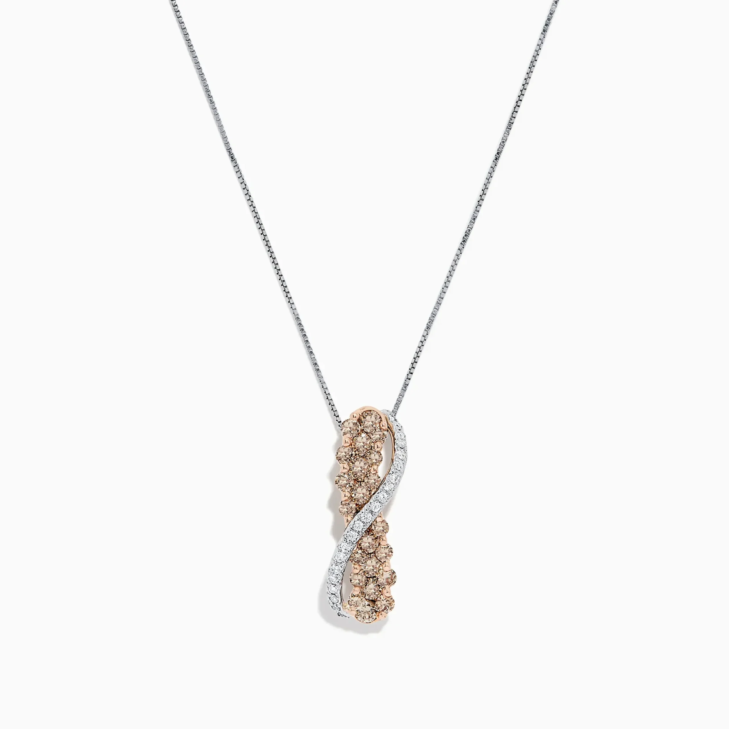 14K Two Tone Gold Brown and White Diamond Crossover Pendant, 1.00 TCW