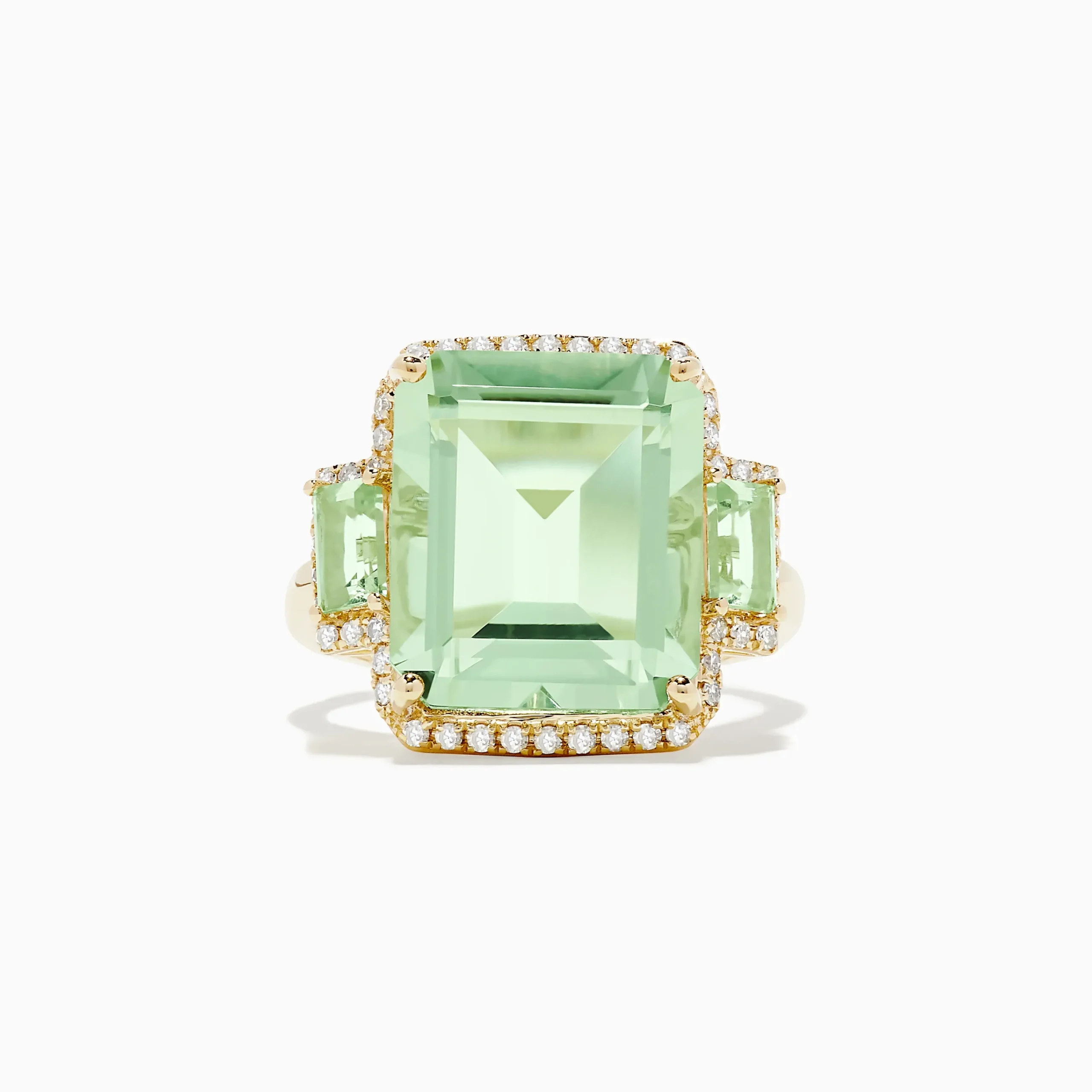 Effy 14K Yellow Gold Green Amethyst and Diamond Ring
