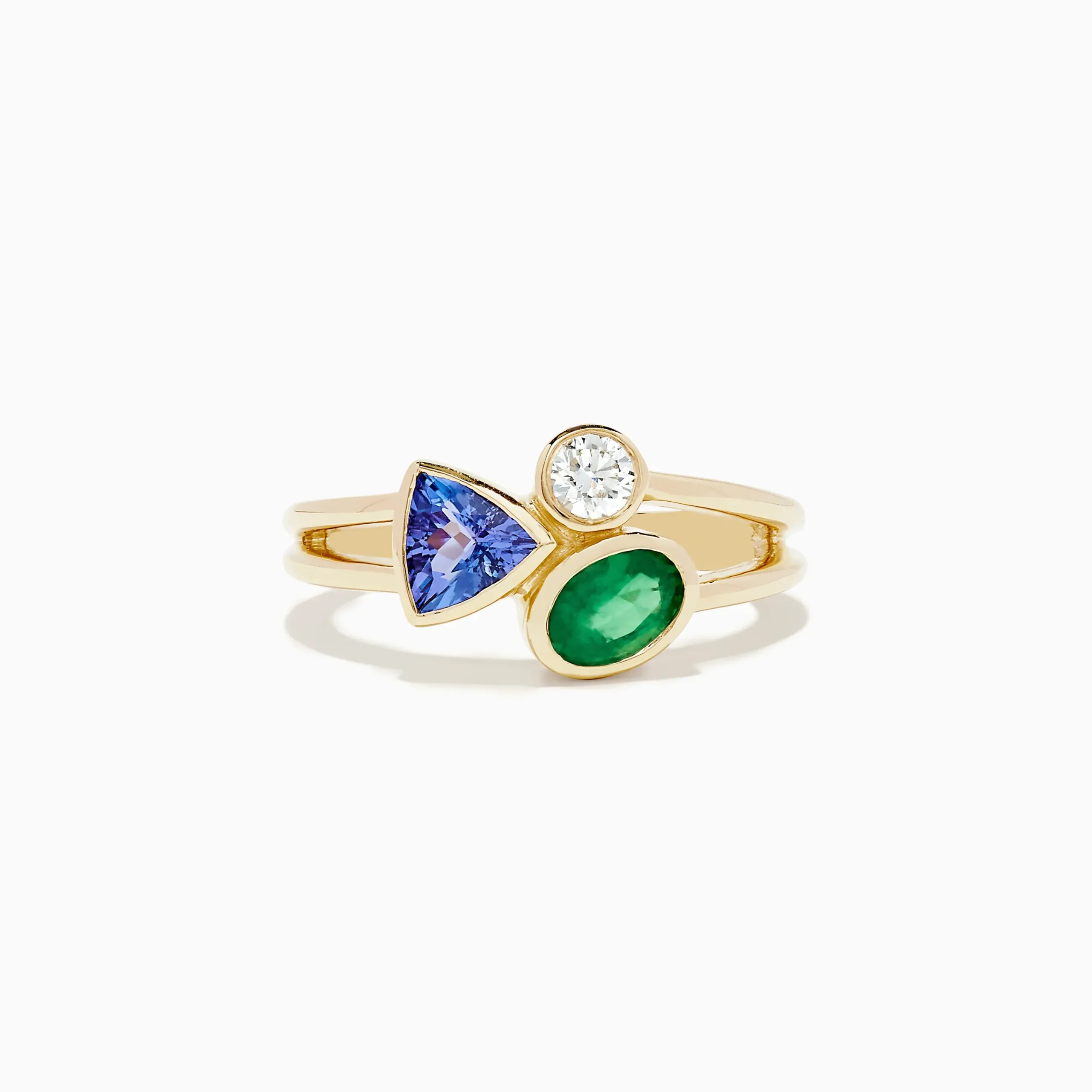 Effy 14K Yellow Gold Tri Stone Diamond, Emerald and Tanzanite Ring