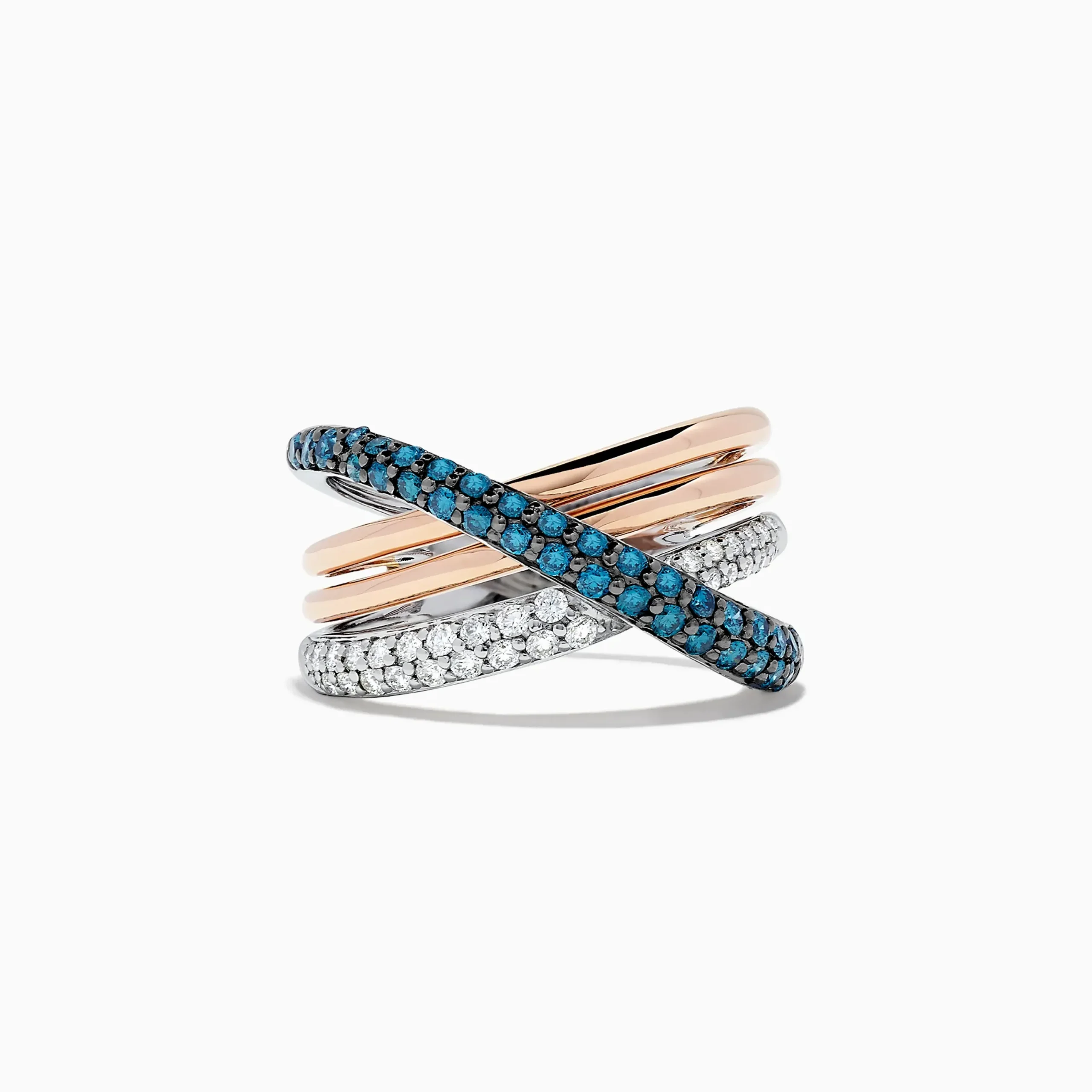 Effy Bella Bleu 14K Two Tone Gold Blue and White Diamond Ring, 0.79 TCW
