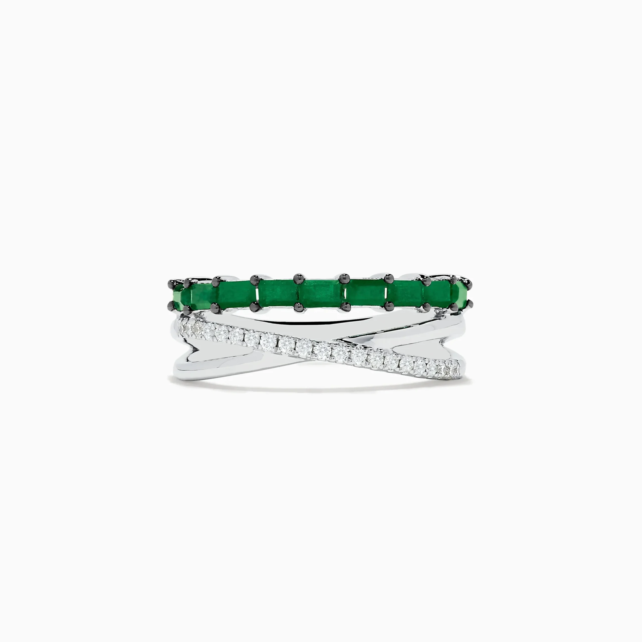 Effy Brasilica 14K White Gold Emerald and Diamond Crossover Ring