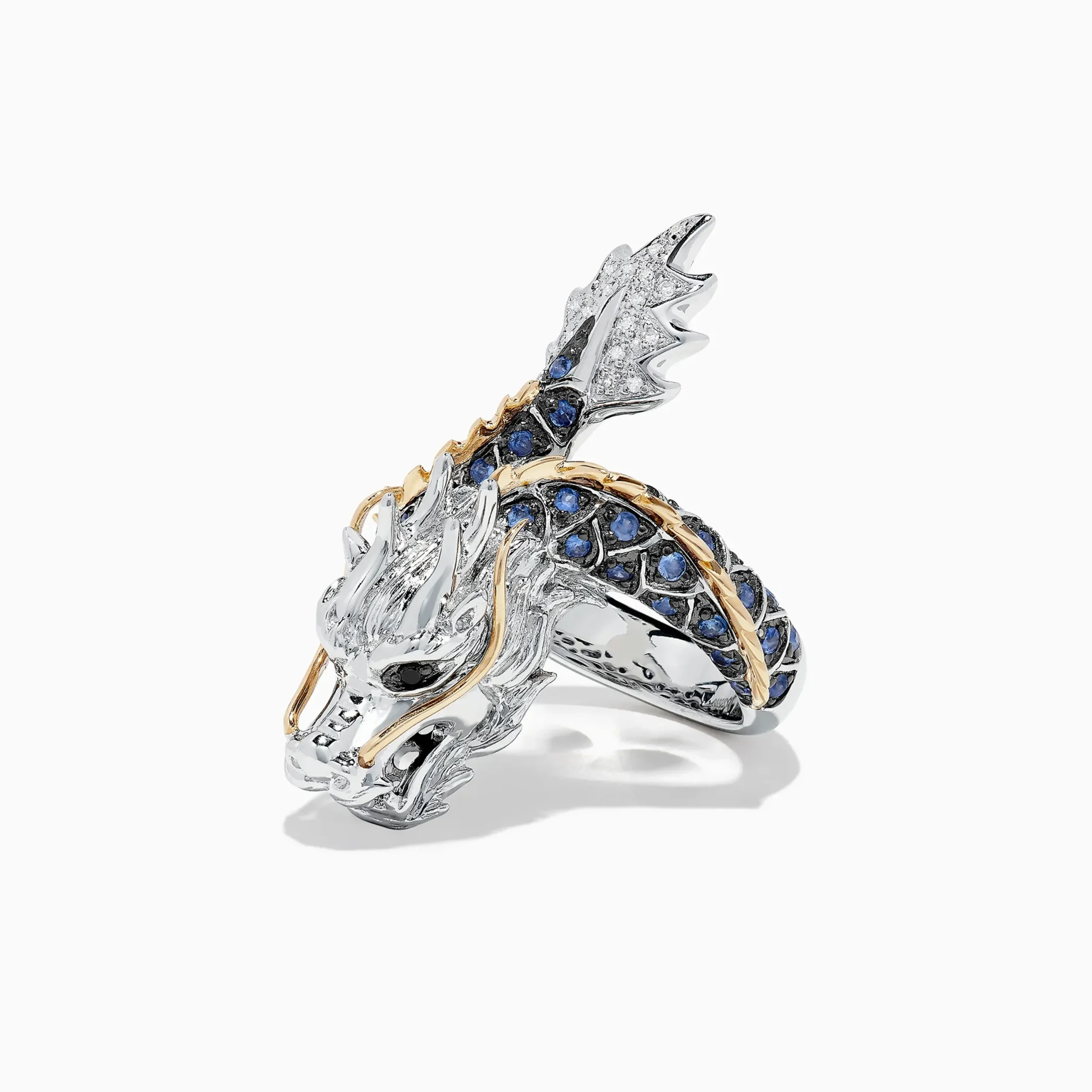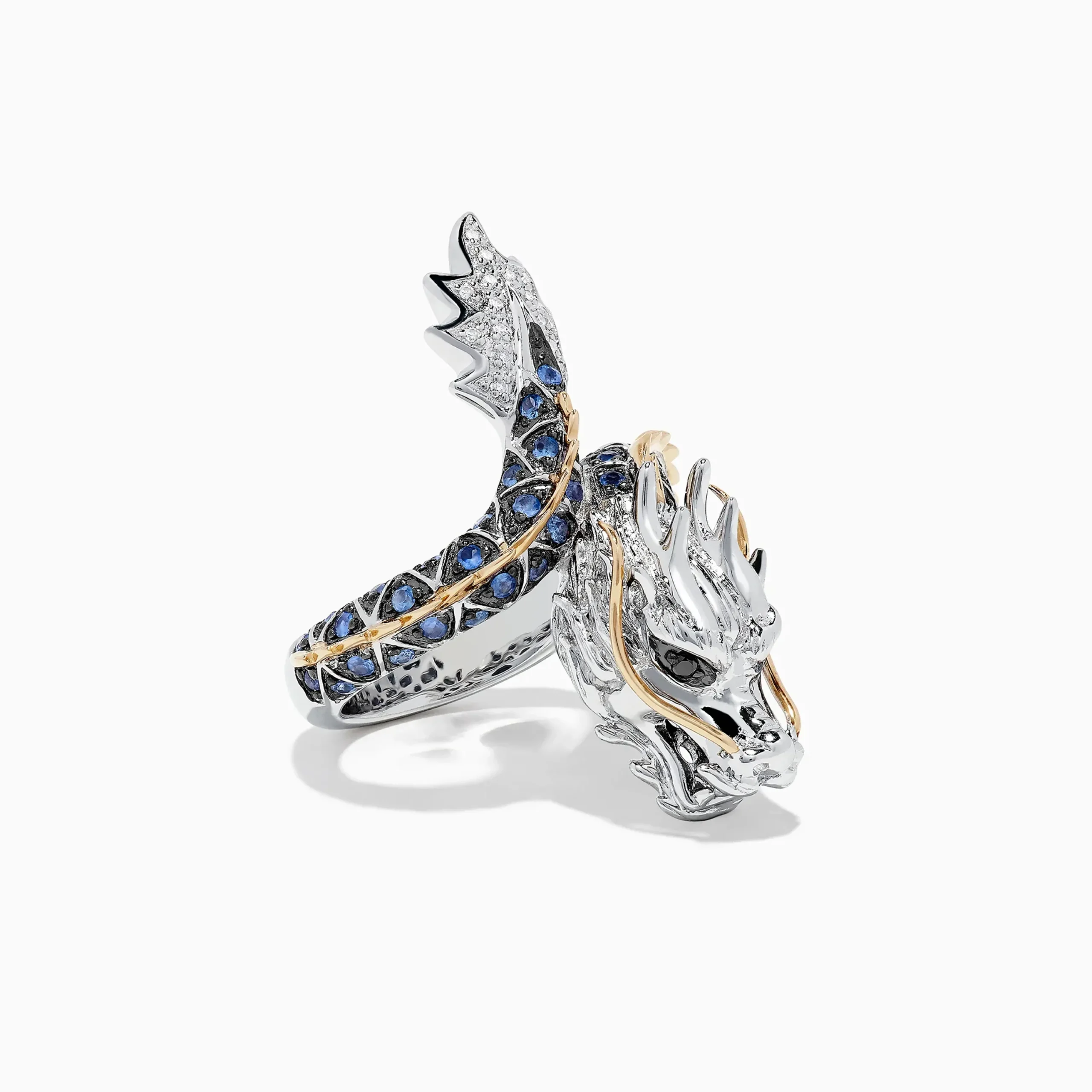 Effy Safari Sterling Silver and 14K Gold Sapphire Dragon Ring, 0.79 TCW