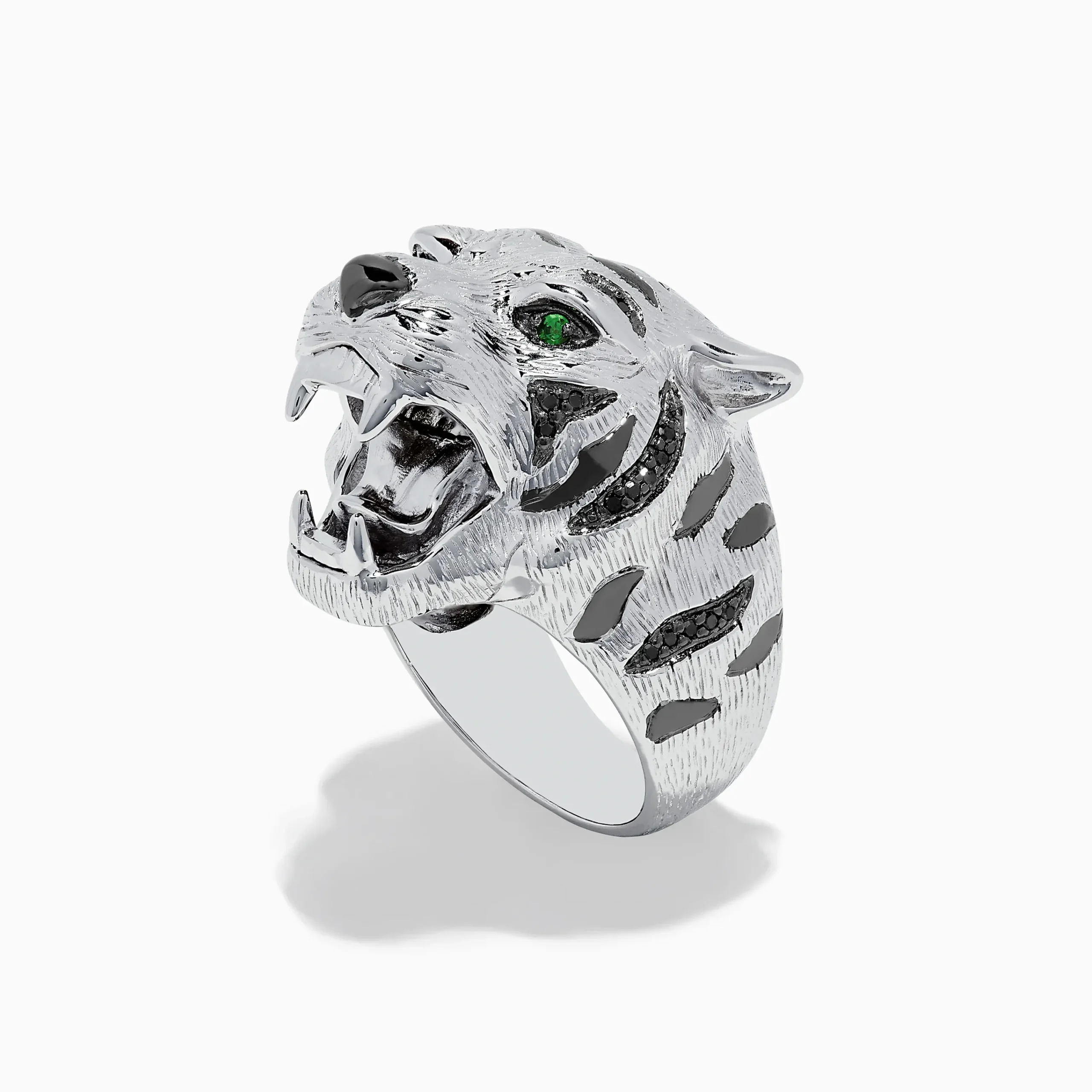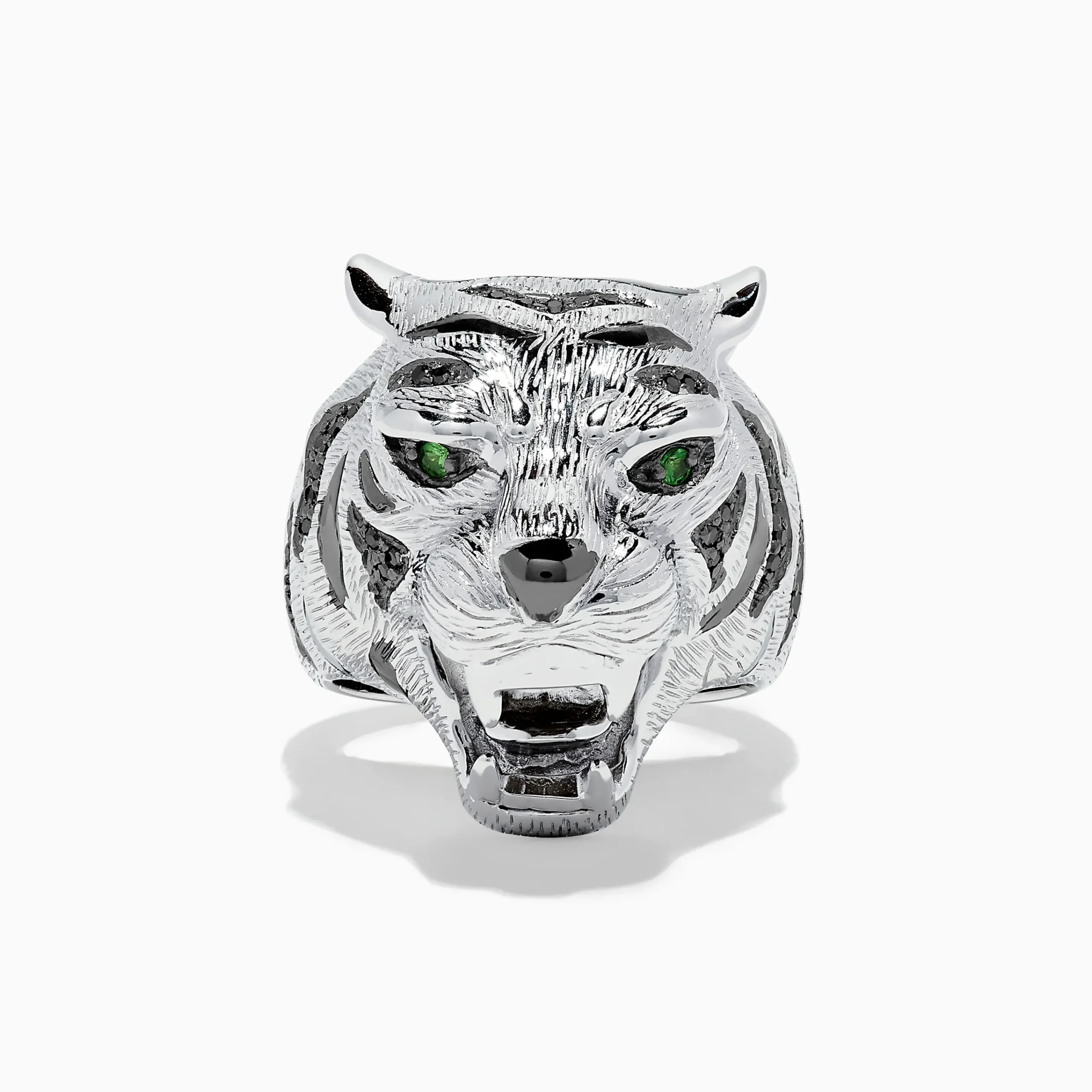 Effy Sterling Silver Black Diamond and Tsavorite Tiger Ring, 0.21 TCW