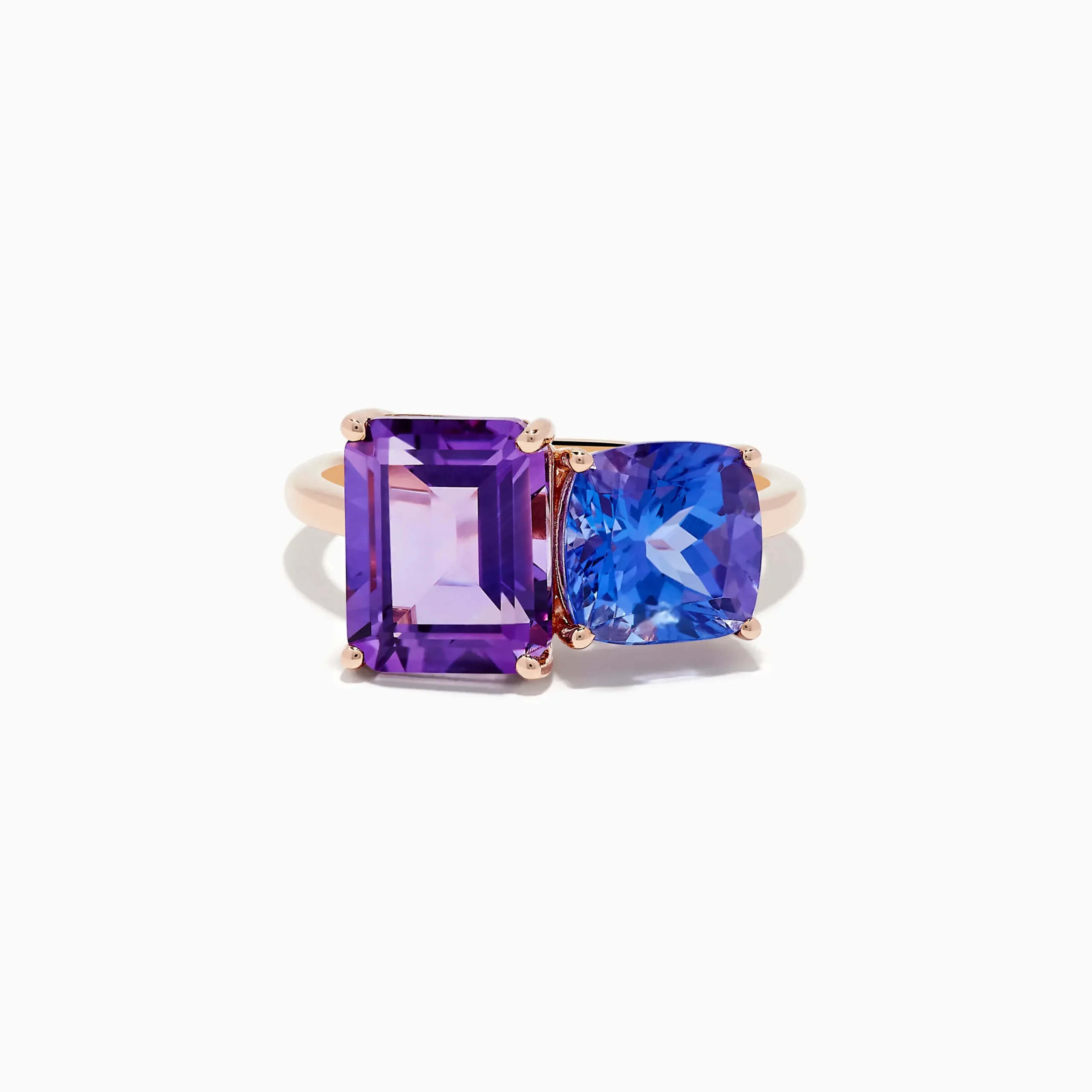Effy 14k Rose Gold Amethyst and Tanzanite Toi Et Moi Ring