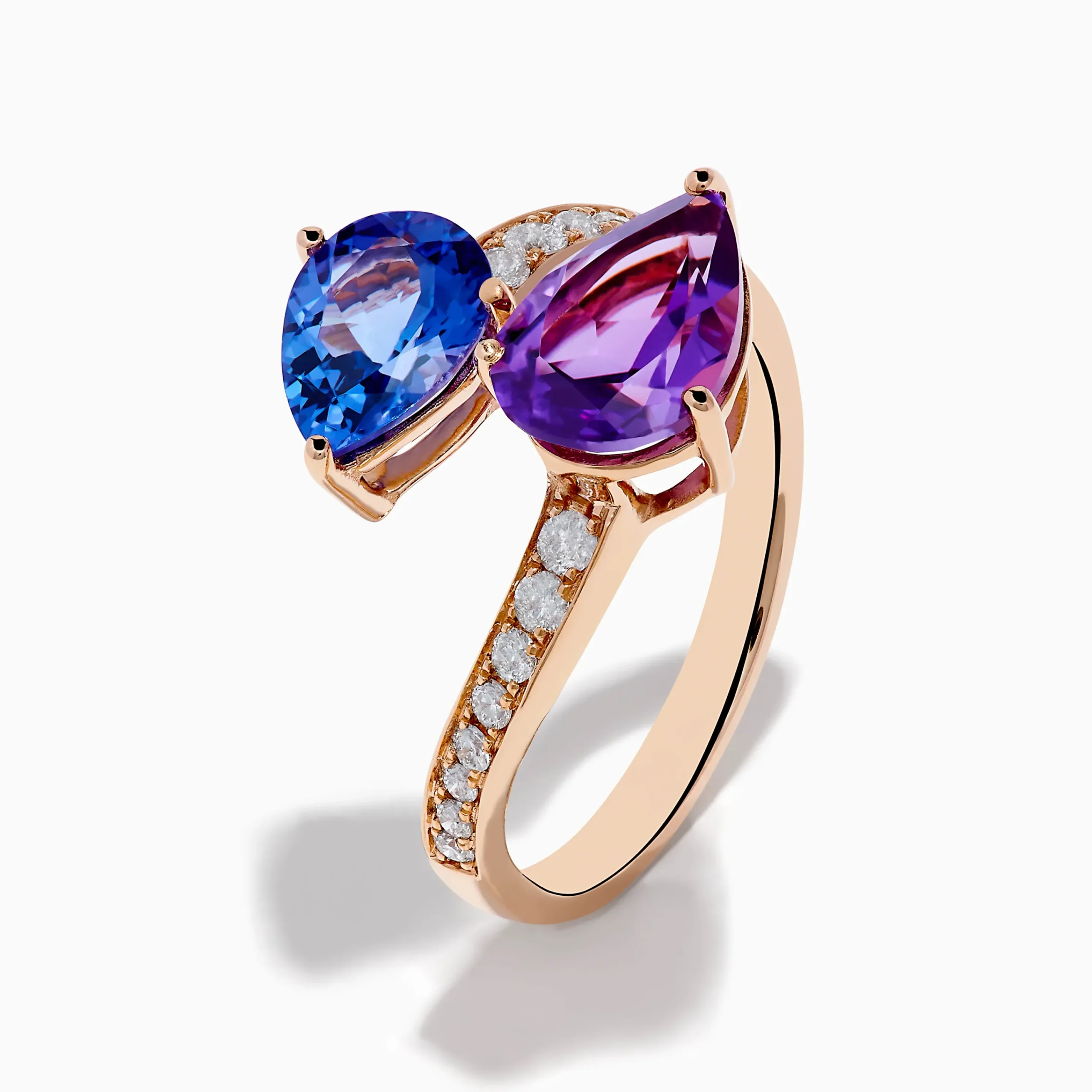 14K Rose Gold Amethyst, Tanzanite and Diamond Ring