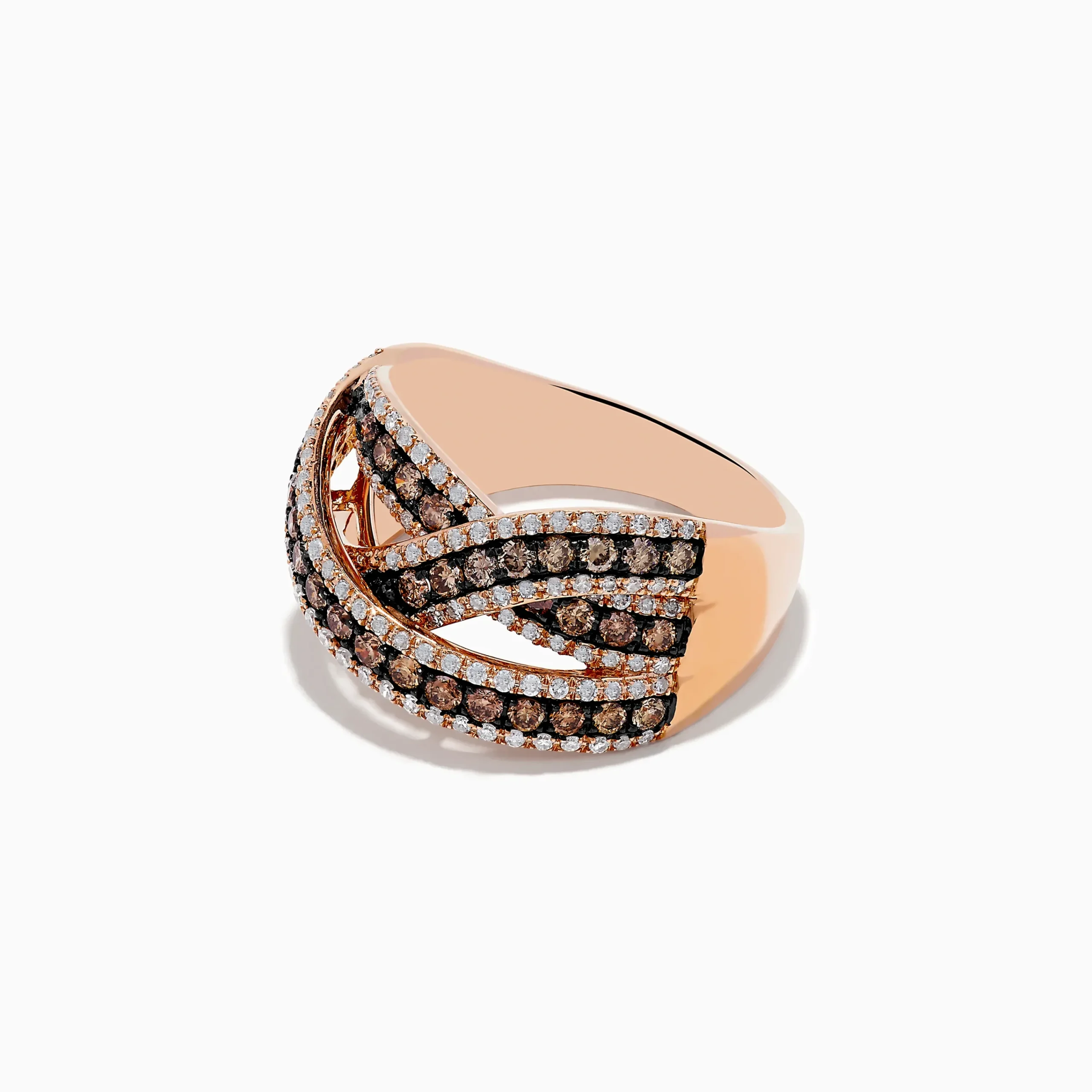 Effy Espresso 14K Rose Gold Diamond Criss Cross Ring, 1.06 TCW