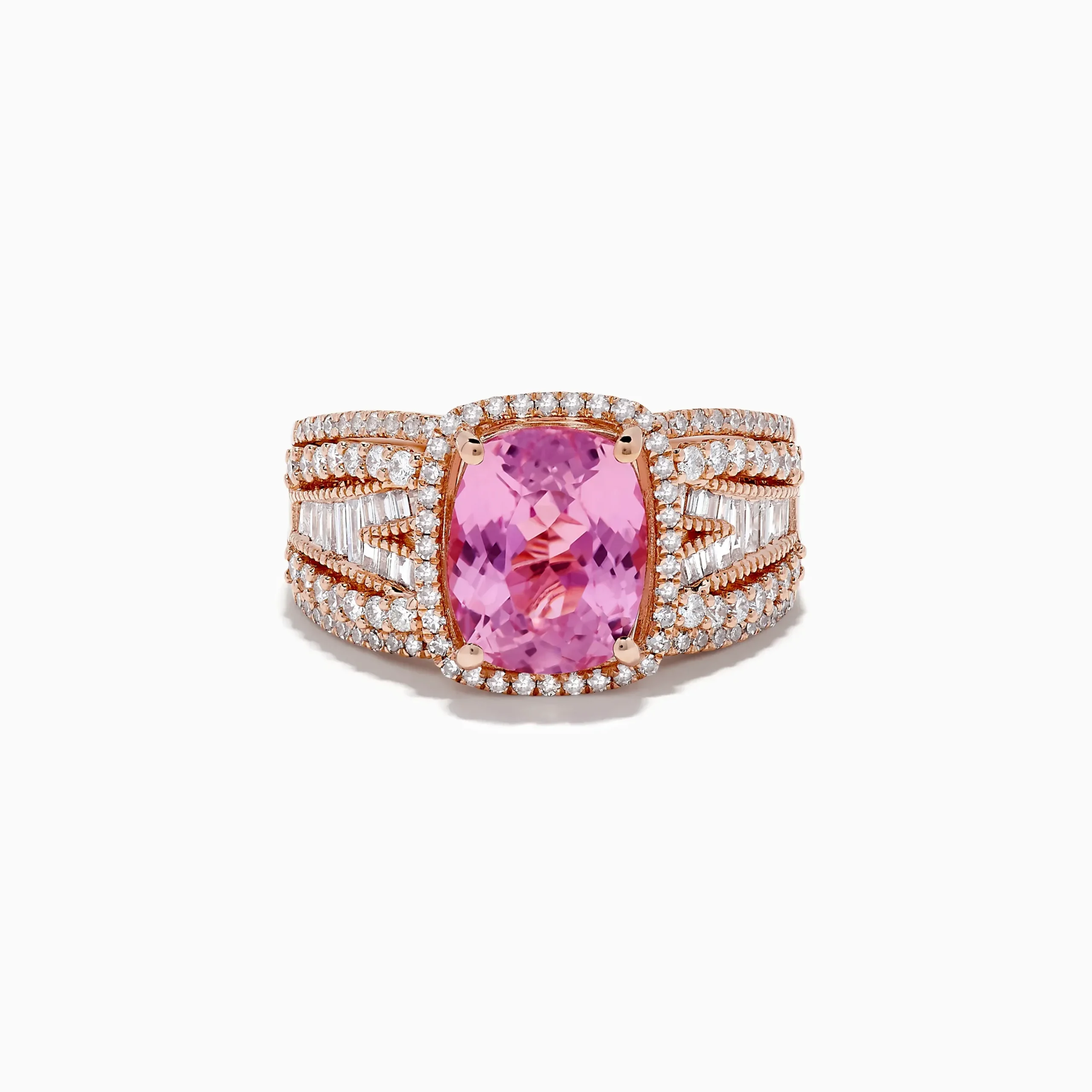 Metal:14K Gold Metal Color:RoseStone: Round Diamond 0.78 Stone 2: Cushion Kunzite 3.114K Rose Gold Kunzite and Diamond R…