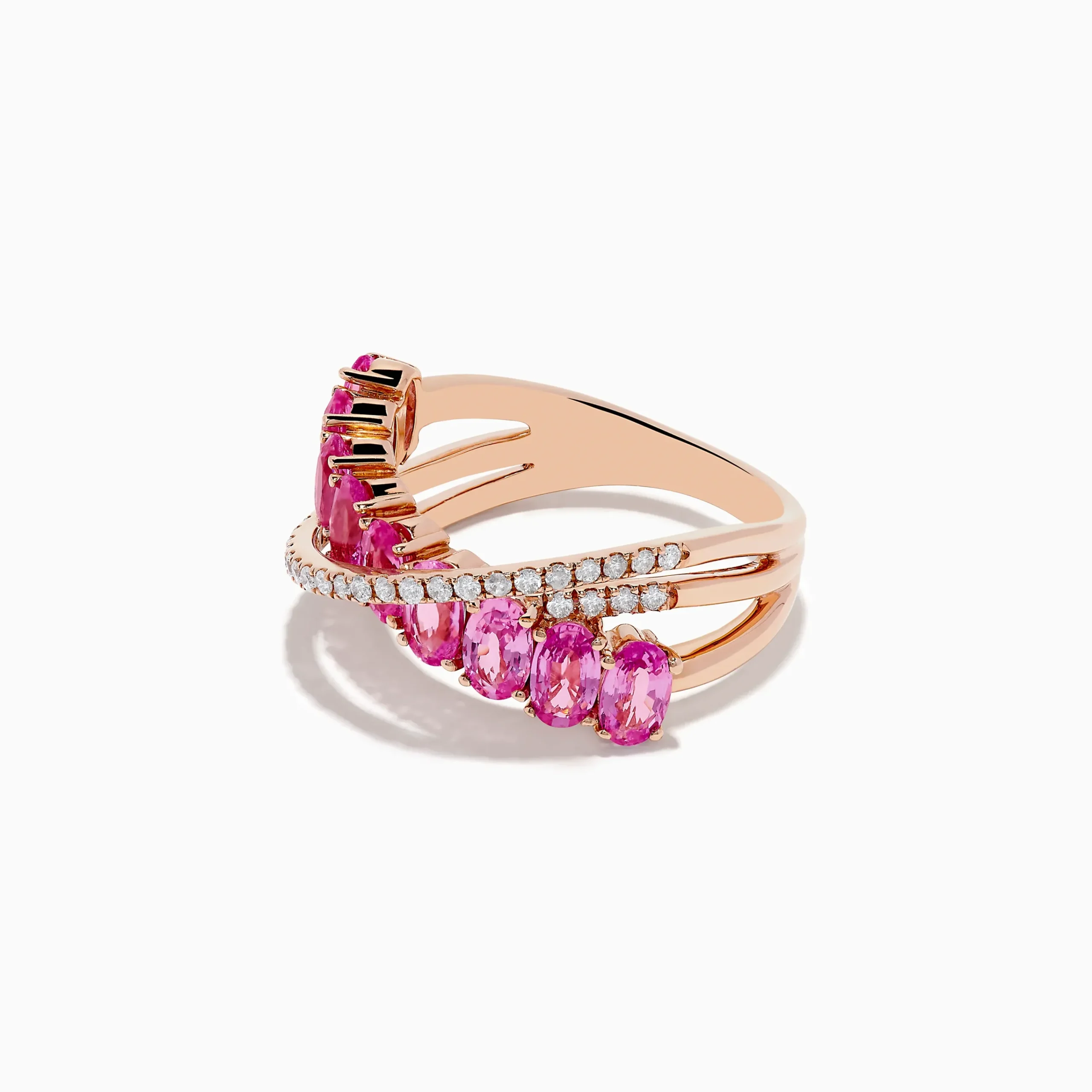 Effy 14k Rose Gold Pink Sapphire and Diamond Crossover Ring
