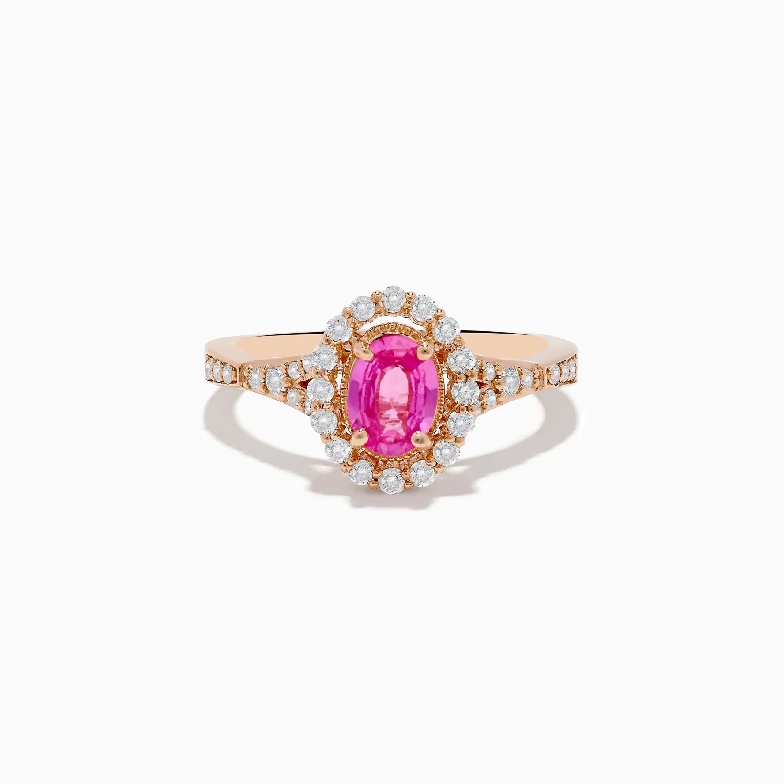 14K Rose Gold Pink Sapphire and Diamond Ring