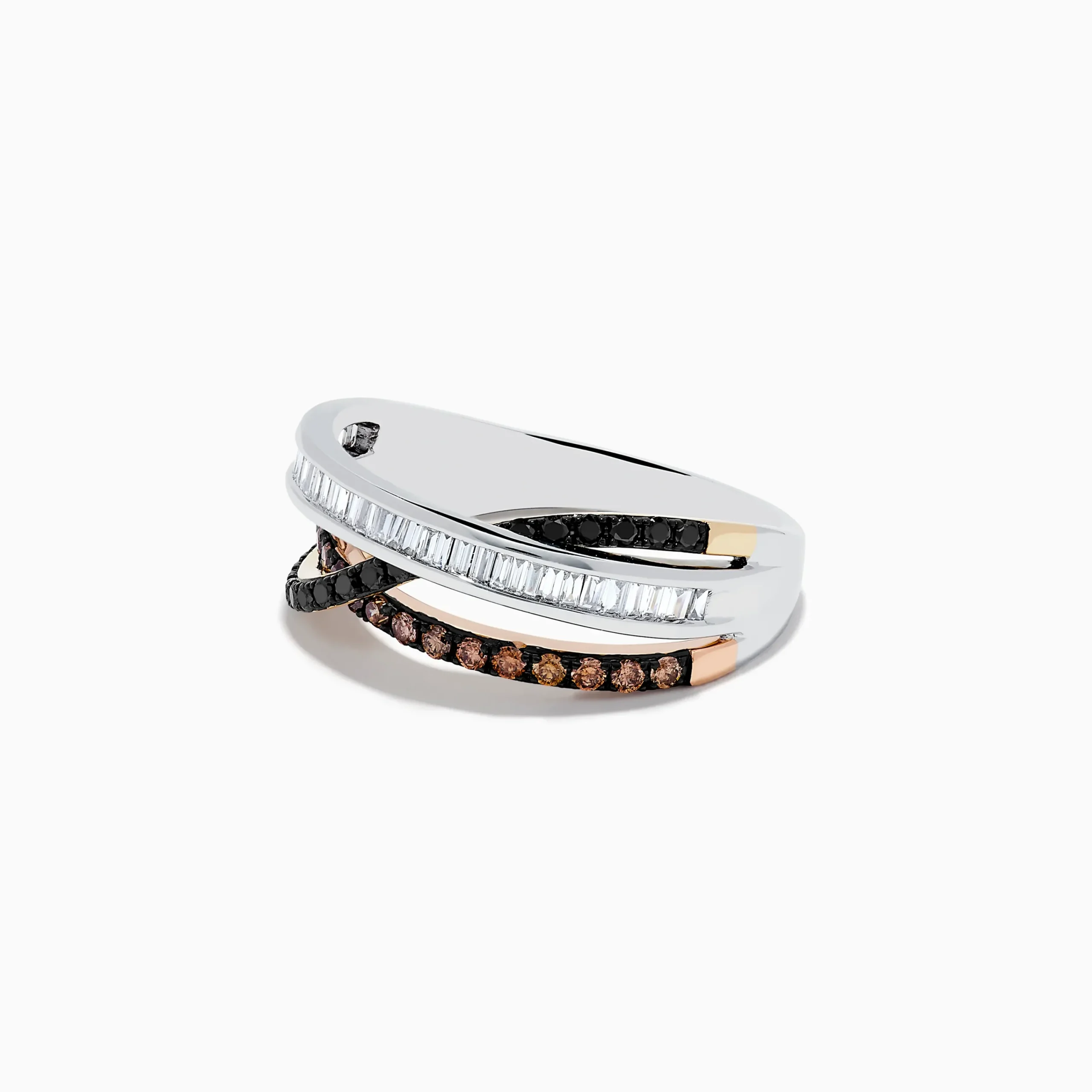 Effy Espresso 14K Three-Tone Gold Brown, Black and White Diamond Crossover Ring 0.63 TCW