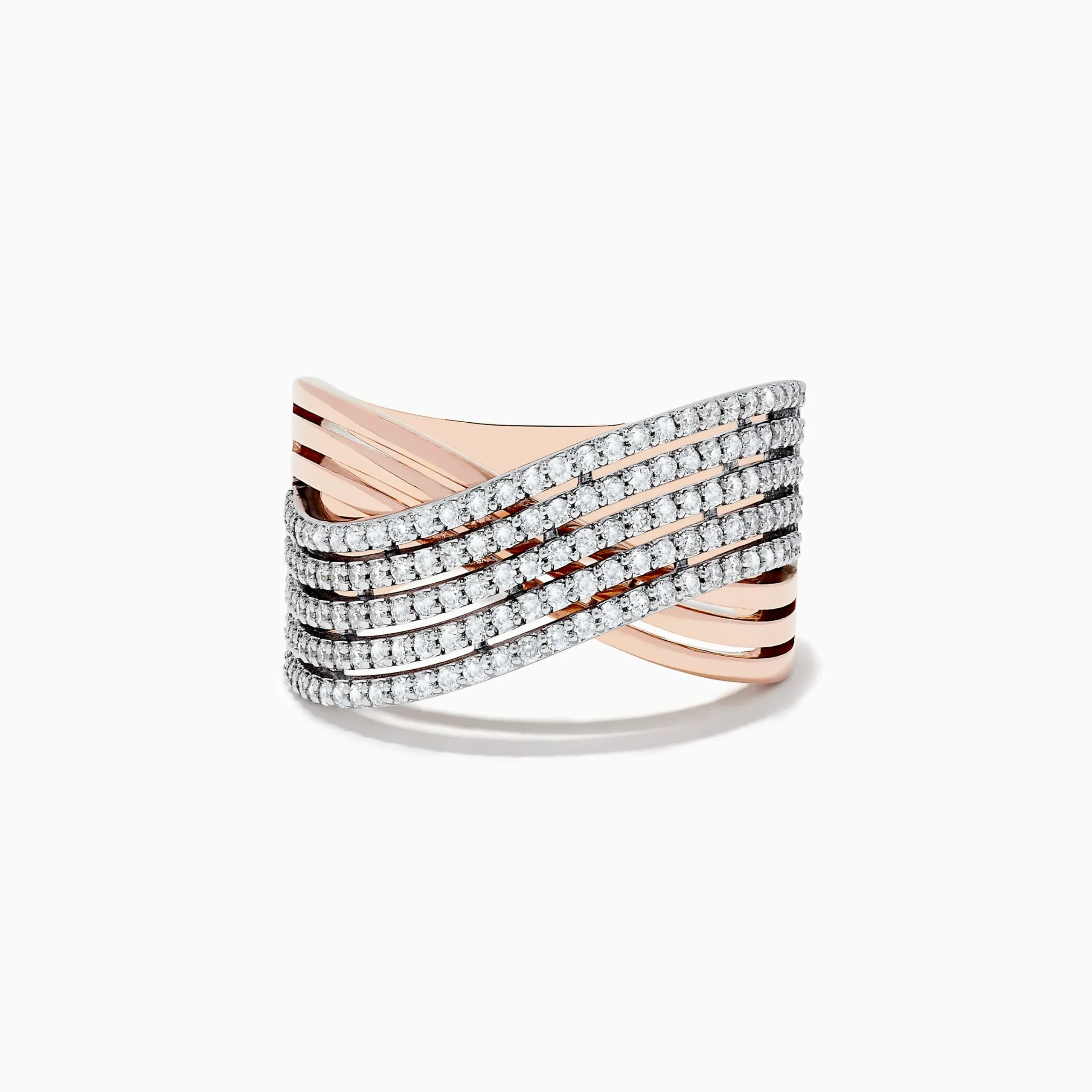 Metal:14K Gold Metal Color:Rose and WhiteStone: Round Diamond 0.76Effy 14K Two-Tone Gold Diamond Crossover Ring