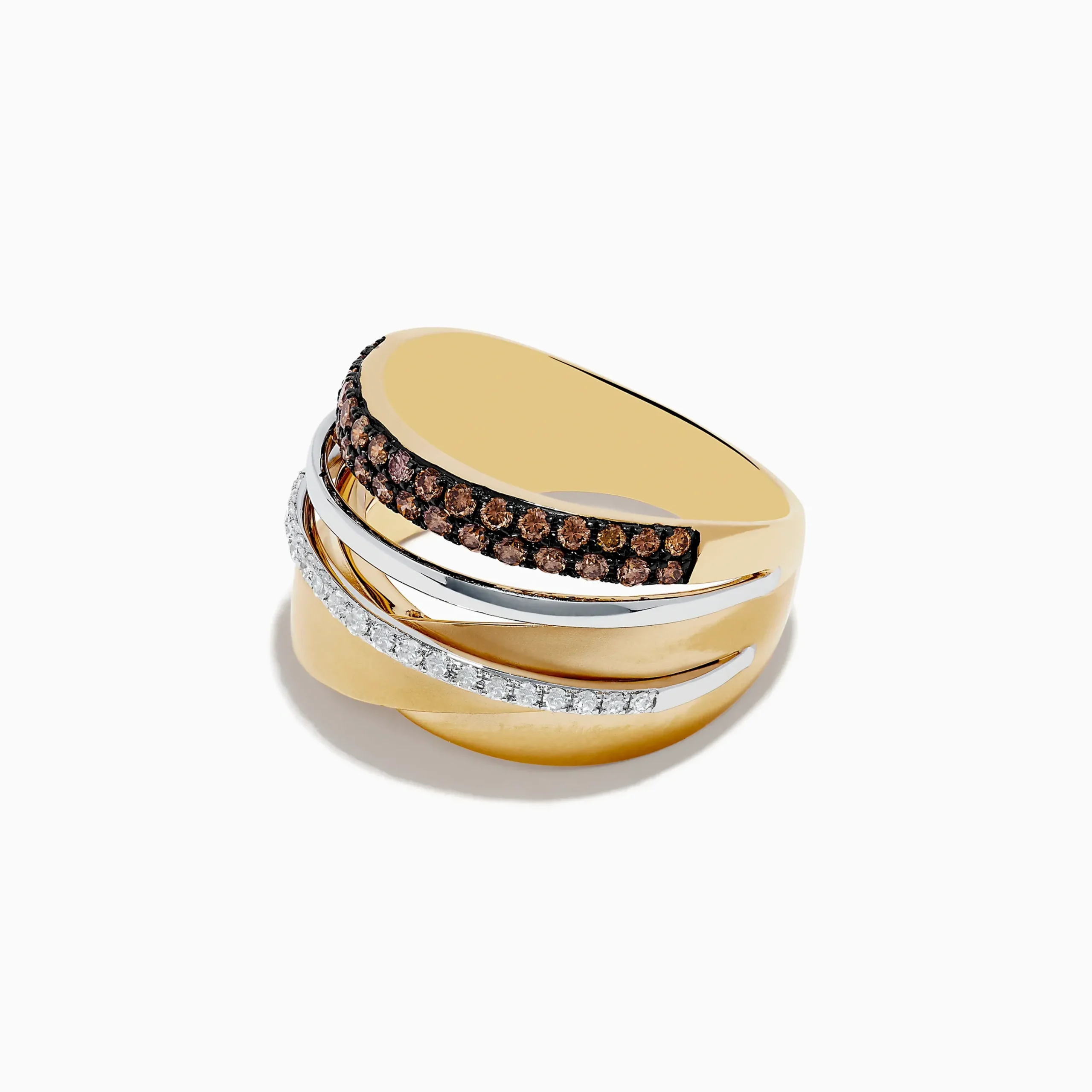 14K Two-Tone Gold Espresso and White Diamond Crossover Ring