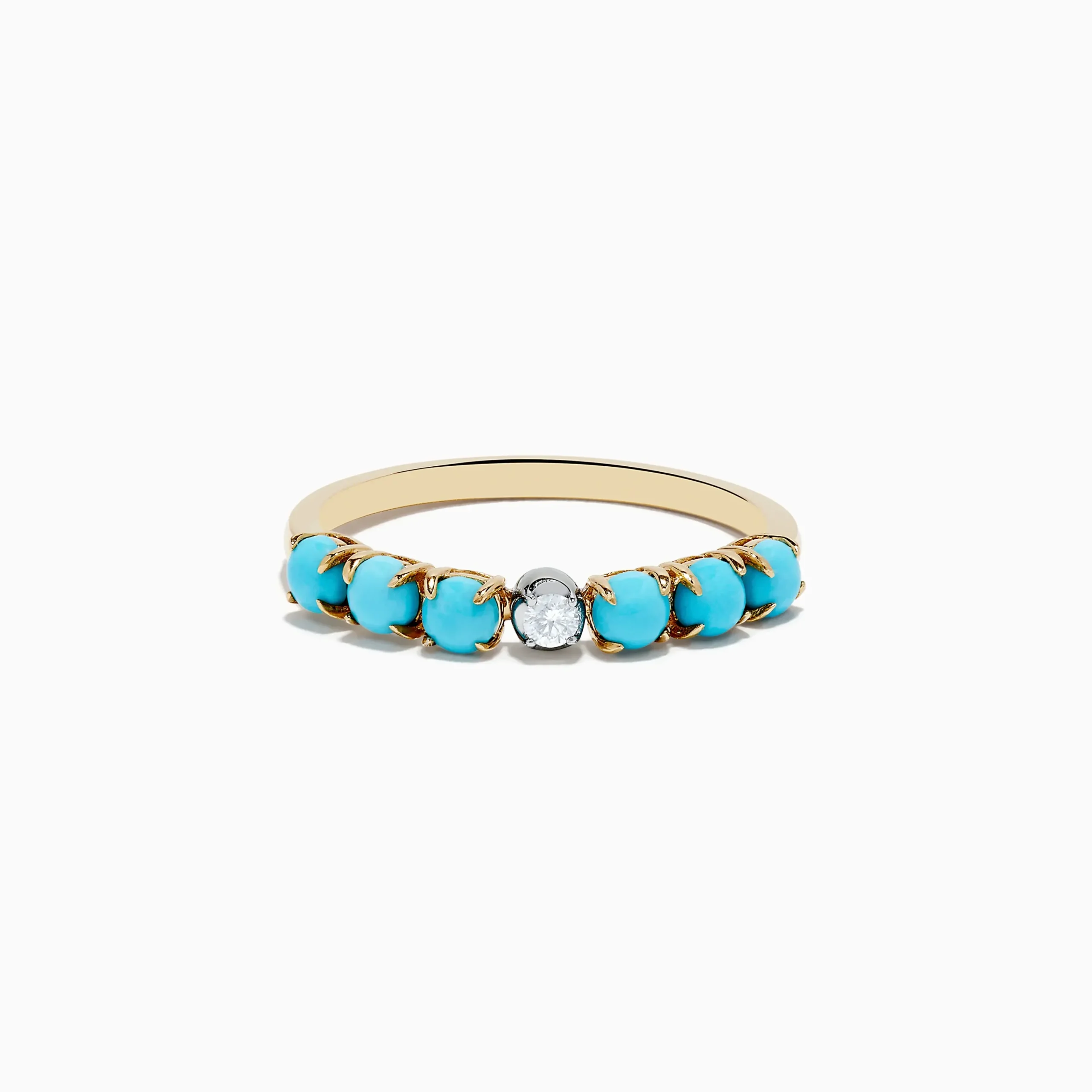 Metal:14K Gold Metal Color:Yellow and WhiteStone: Round Diamond 0.04 Stone 2: Round Turquoise 0.6Effy 14K Two-Tone Gold …