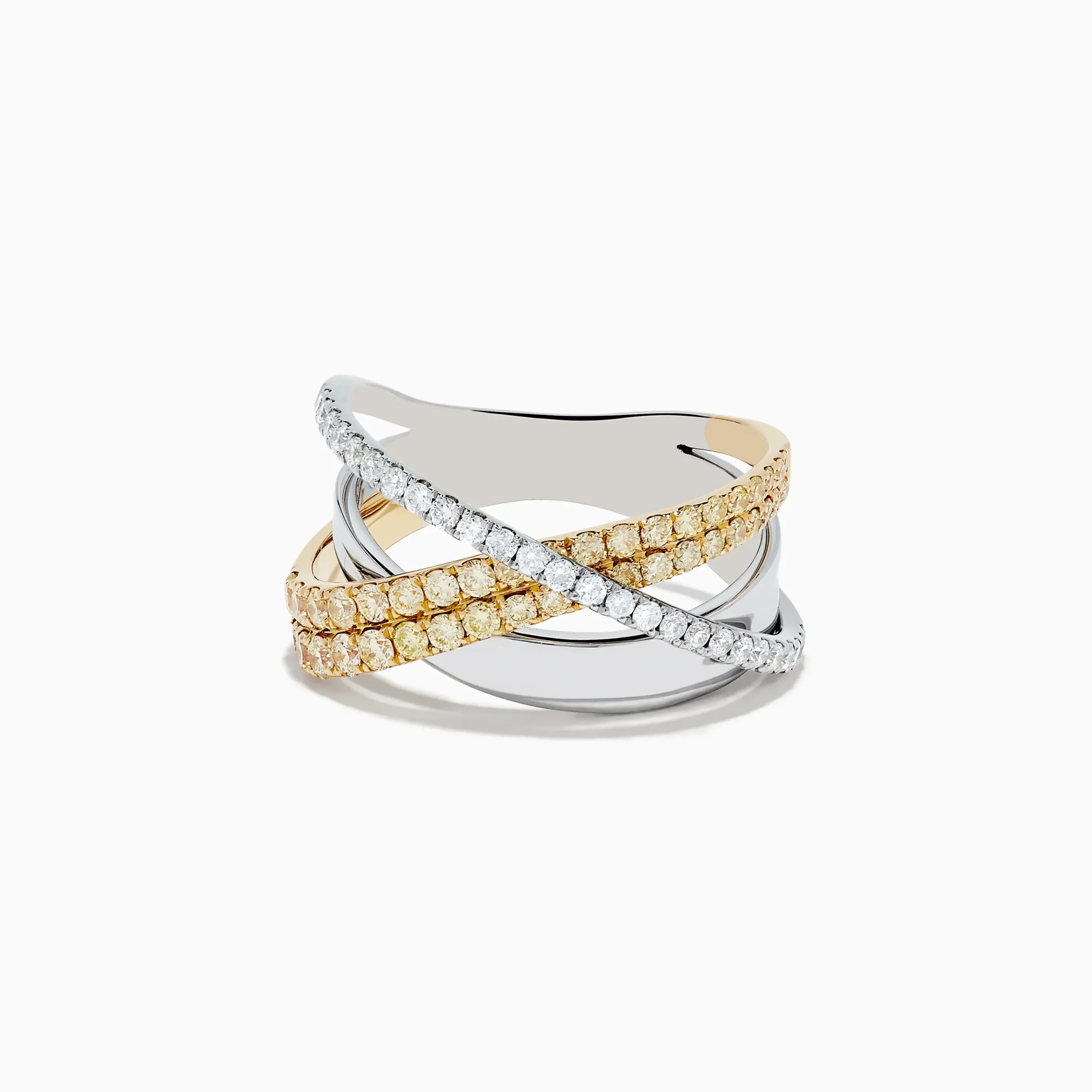Effy 14K Two-Tone Gold Yellow and White Diamond Crossover Ring