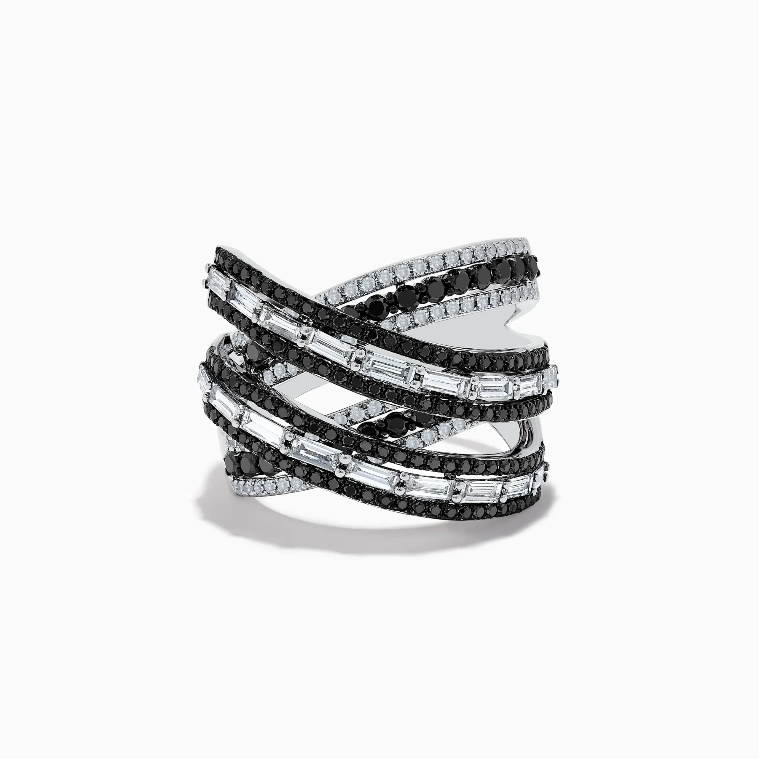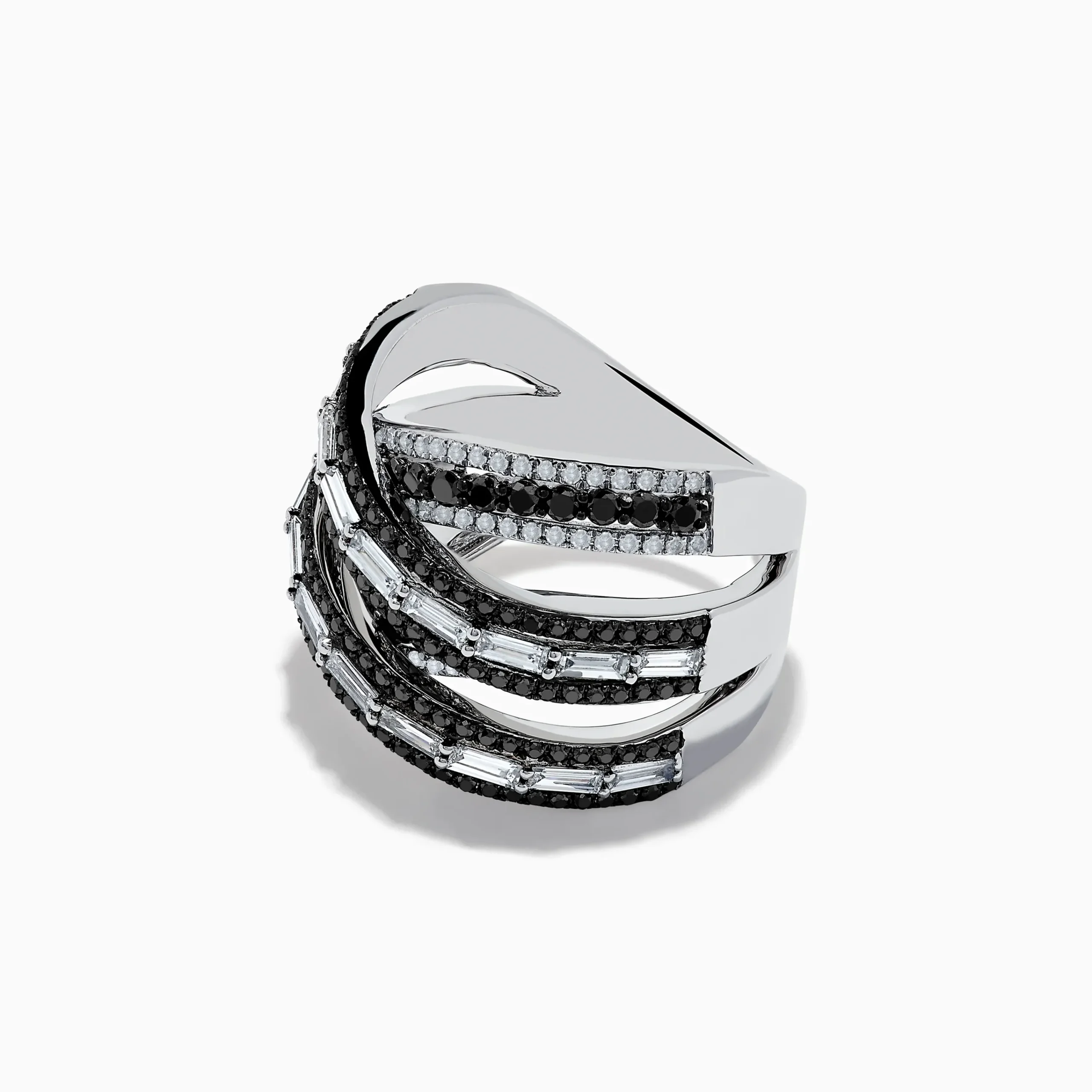 14K White Gold Black and White Diamond Criss Cross Ring