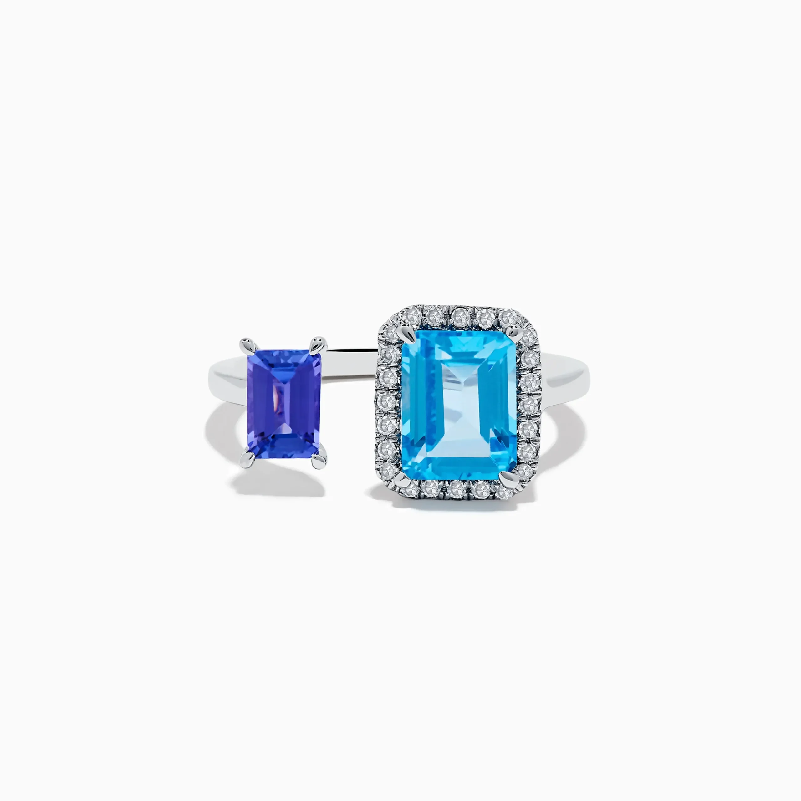 Effy 14K White Gold Blue Topaz, Tanzanite, and Diamond Toi Et Moi Ring