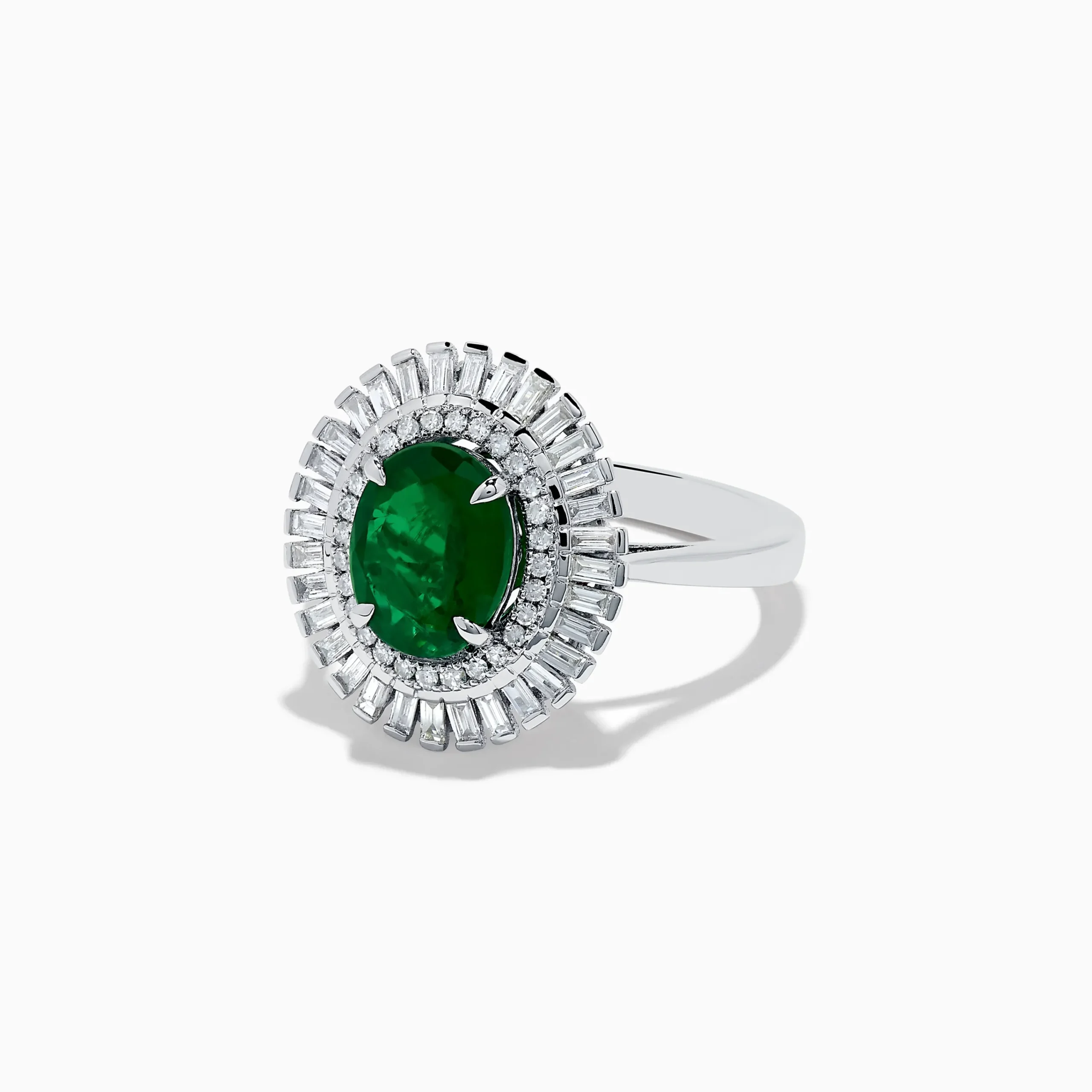 Metal:14K Gold Metal Color:WhiteStone: Multi Shape Diamond 0.35 Stone 2: Oval Emerald 1.52Effy 14K White Gold Emerald an…