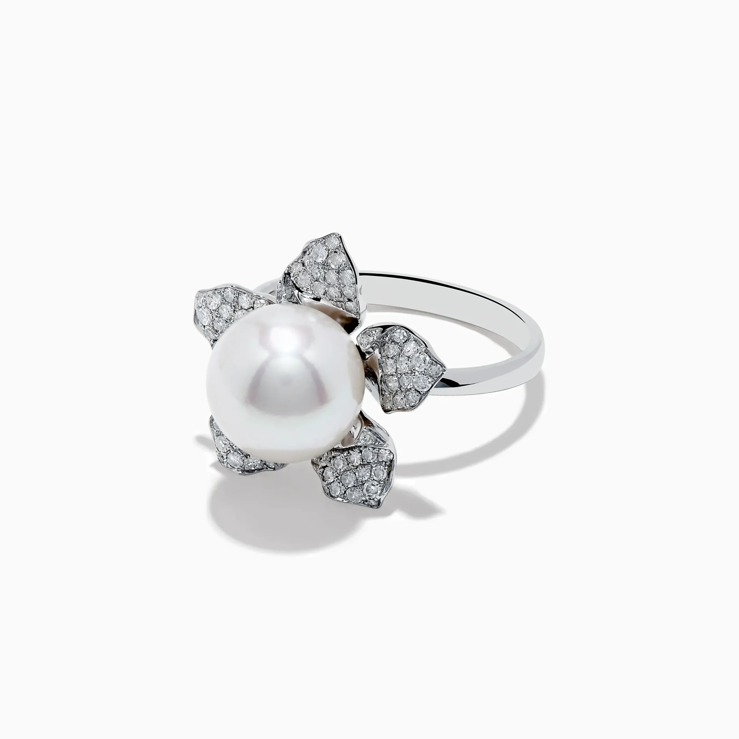 14K White Gold Fresh Water Pearl and Diamond Flower Ring