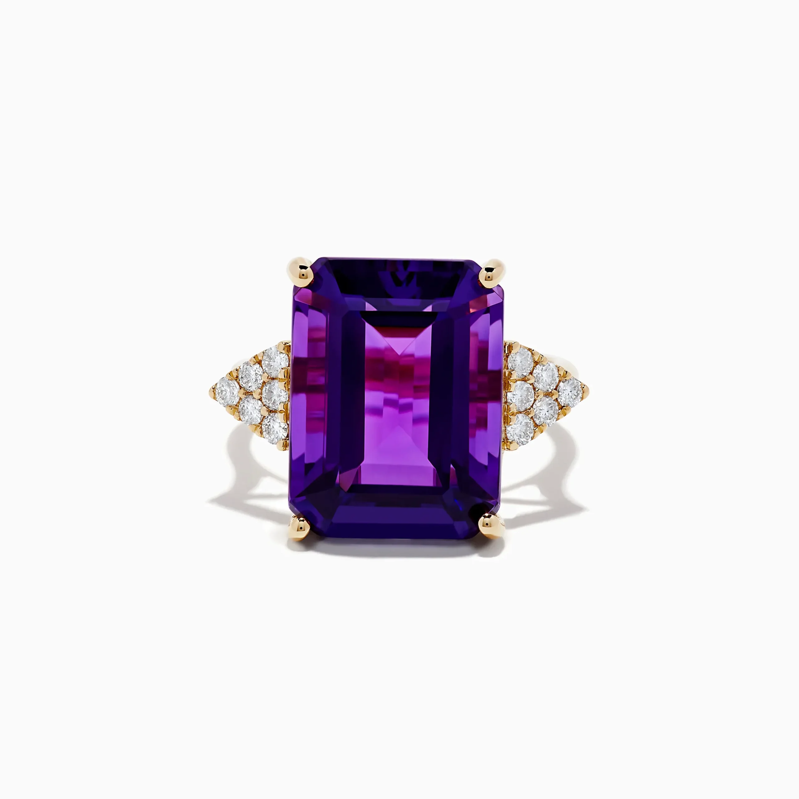 Metal:14K Gold Metal Color:YellowStone: Round Diamond 0.23 Stone 2: Emerald Cut Amethyst 10.814K Yellow Gold Amethyst an…