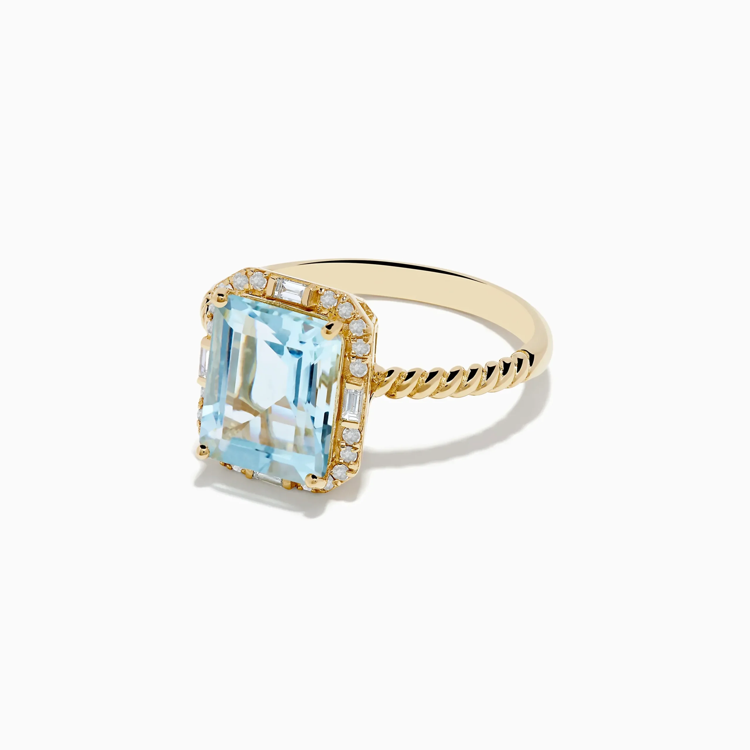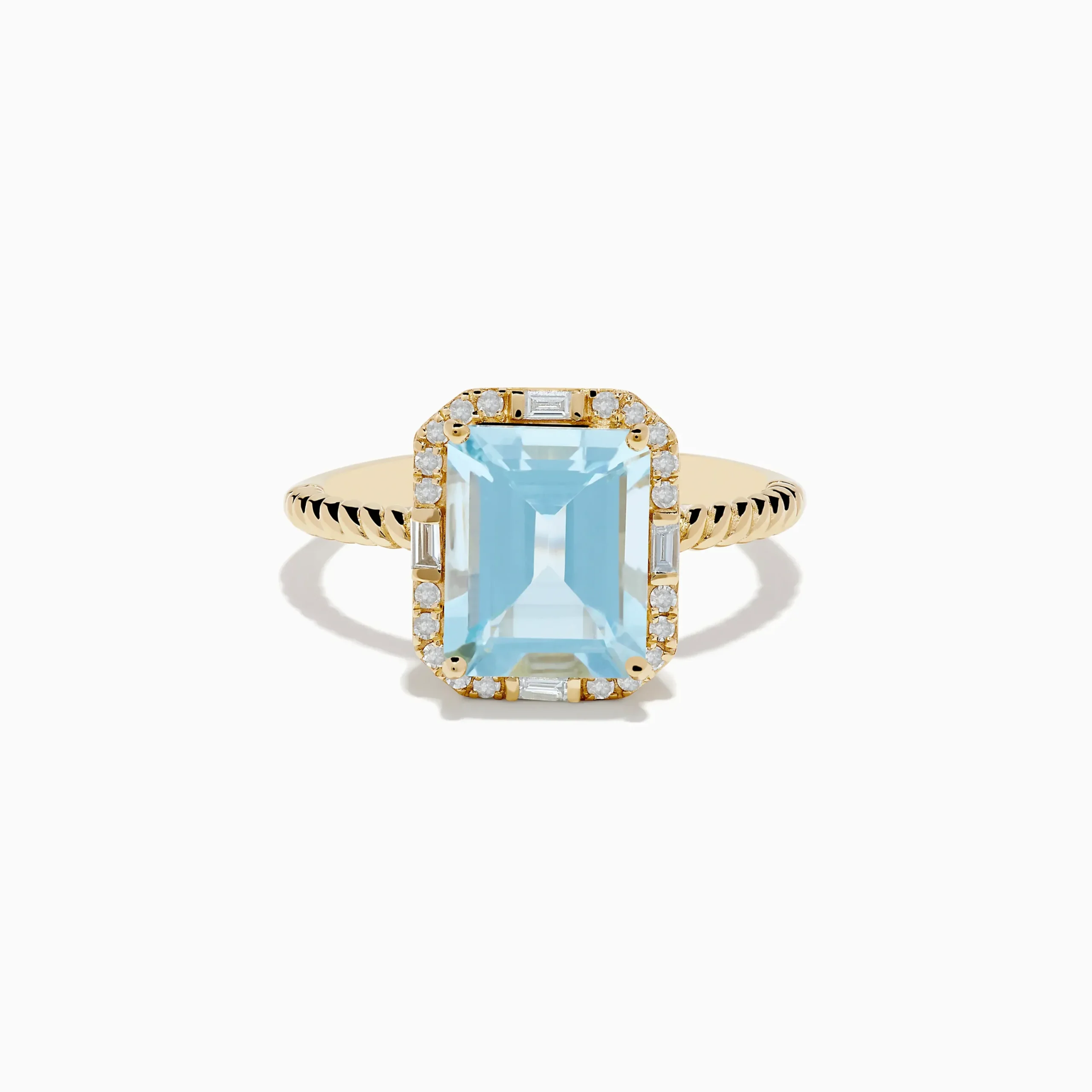 Metal:14K Gold Metal Color:WhiteStone: Emerald Cut Aquamarine 2.85 Stone 2: Round Diamond 0.1814K Yellow Gold Aquamarine…