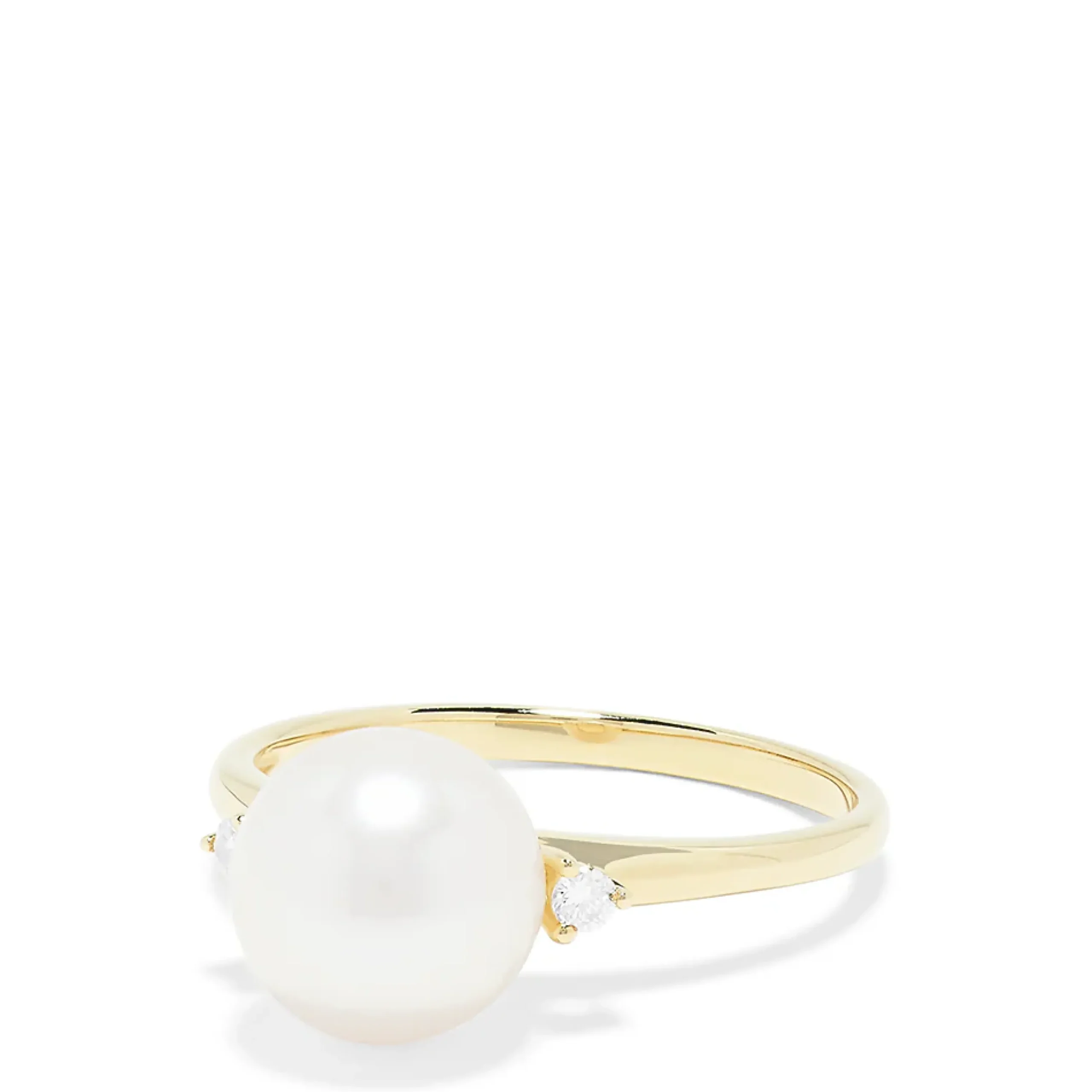 Effy 14K Yellow Gold Cultured Pearl and Diamond Accented Ring, 0.05 TCW