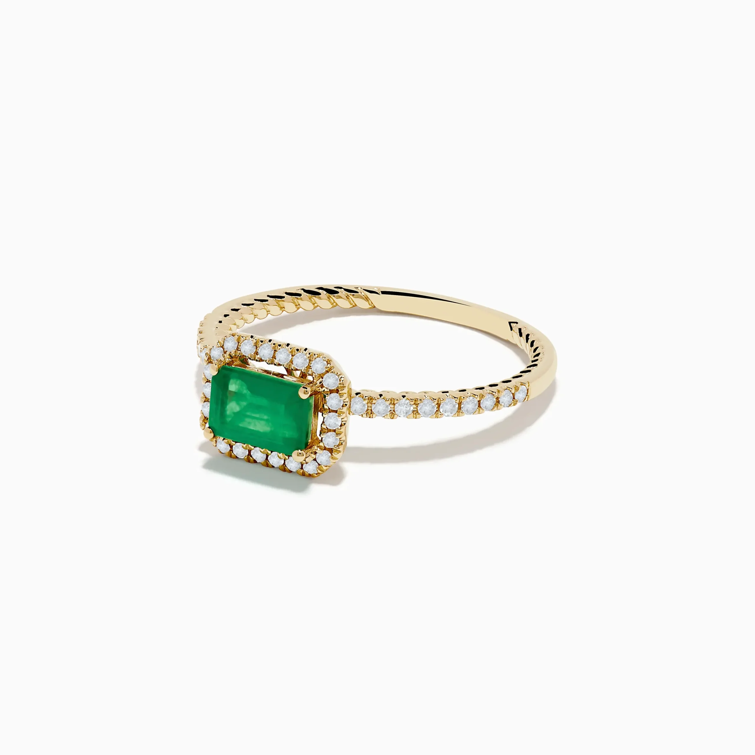 Metal:14K Gold Metal Color:YellowStone: Round Diamond 0.24 Stone 2: Emerald Cut Emerald 0.5214K Yellow Gold Emerald and …