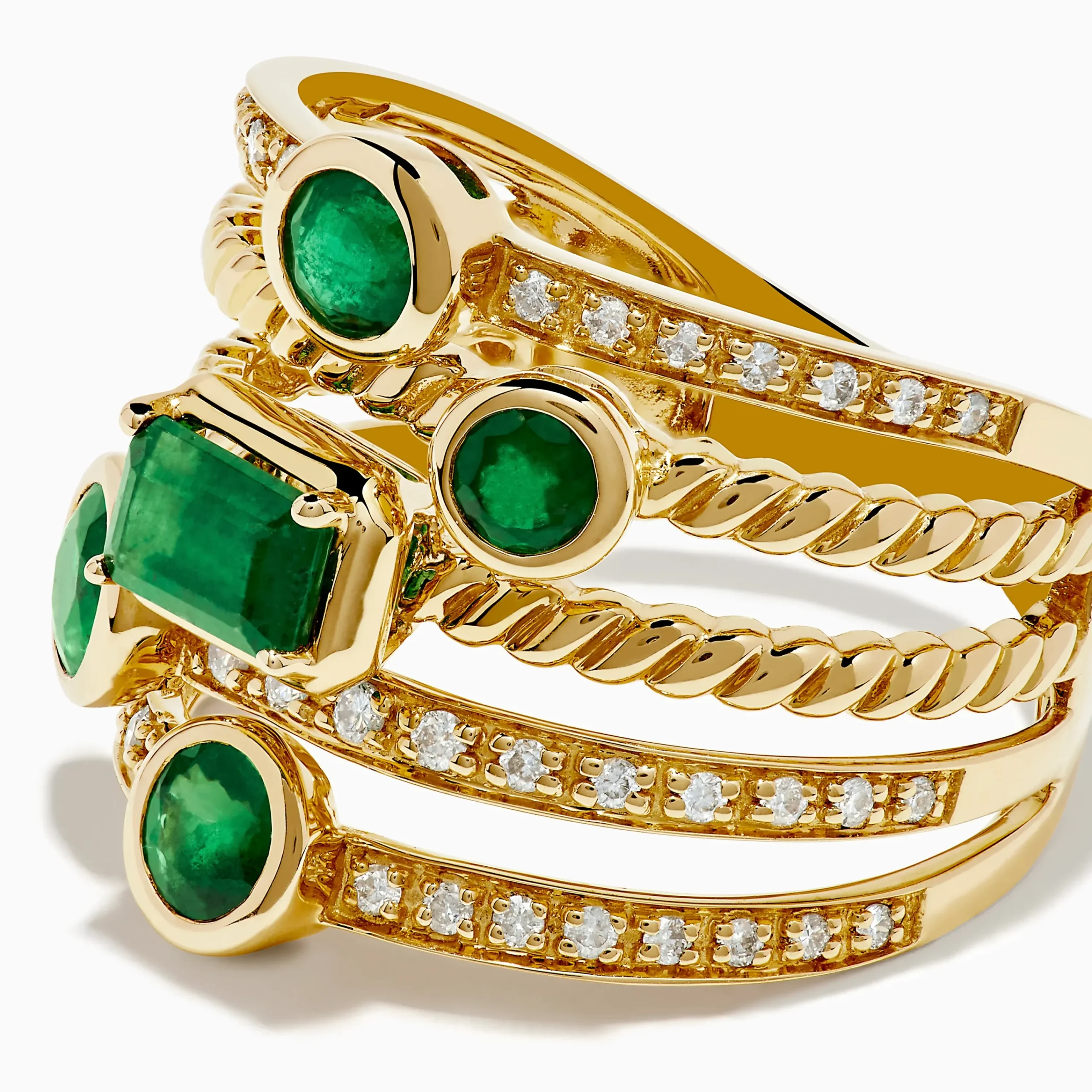 Metal:14K Gold Metal Color:YellowStone: Multi Shape Emerald 1.46 Stone 2: Round Diamond 0.2714K Yellow Gold Emerald and …