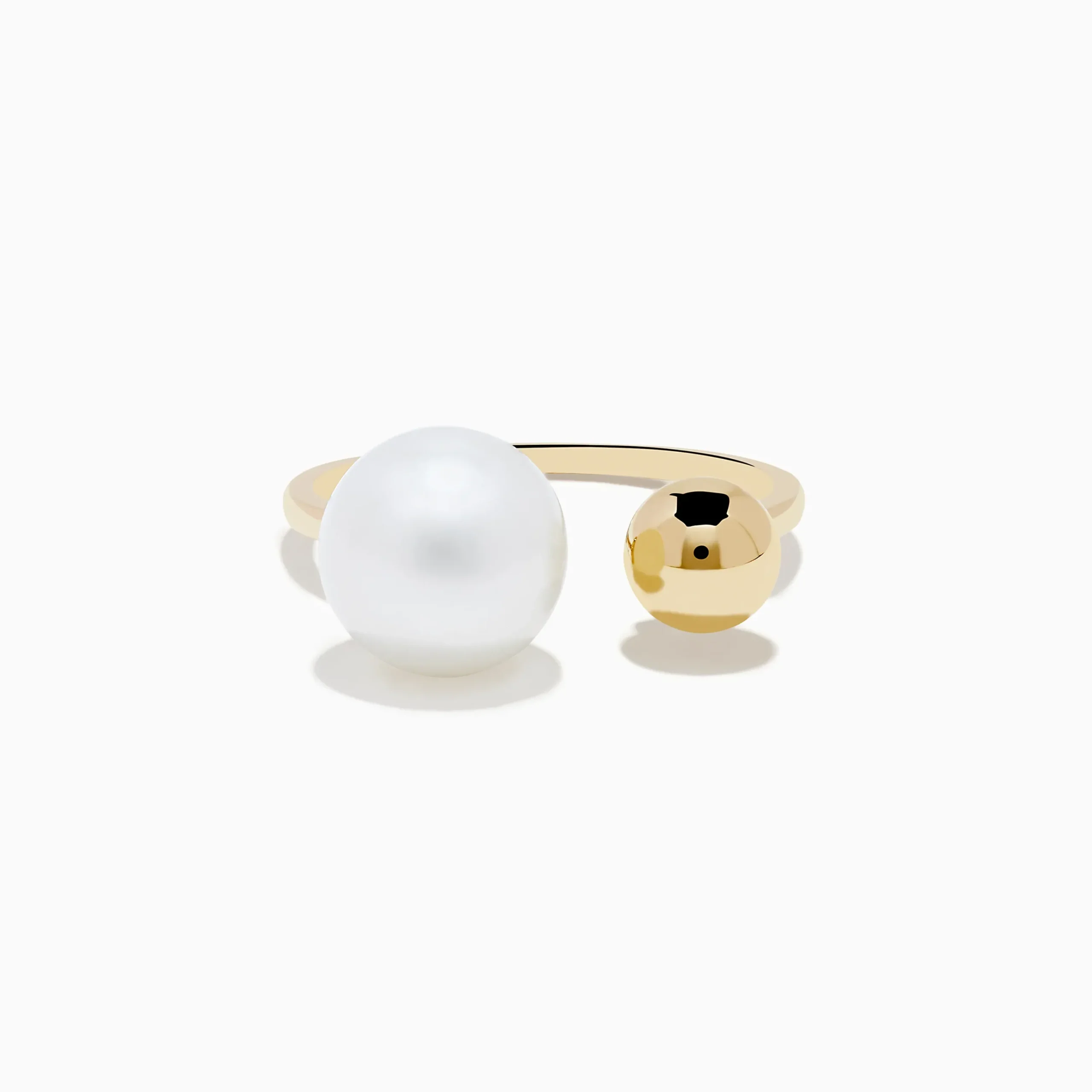 14K Yellow Gold Fresh Water Pearl and Bead Open Ring