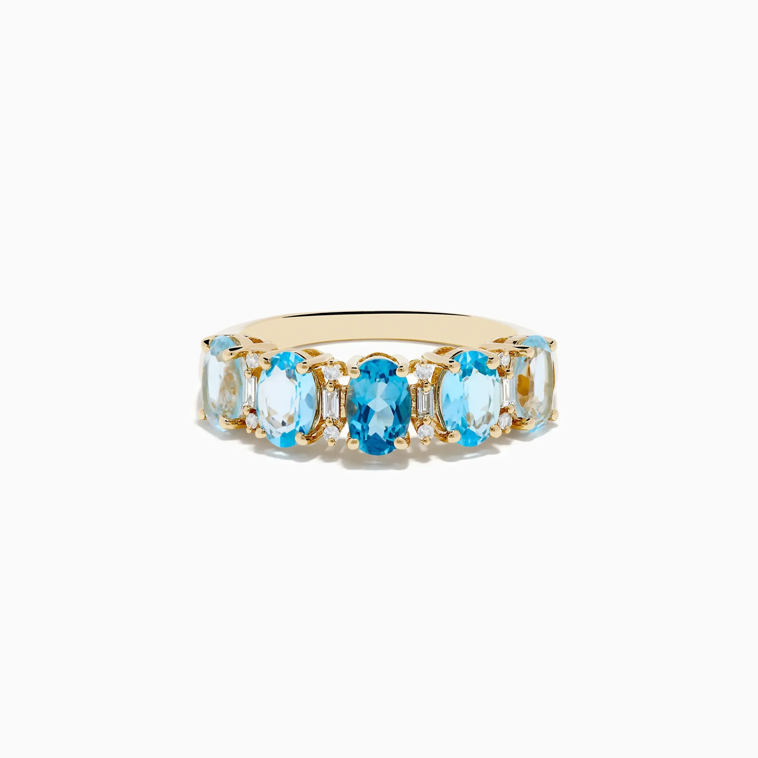 Metal:14K Gold Metal Color:YellowStone: Oval Blue Topaz 3 Stone 2: Round Diamond 0.114K Yellow Gold London, Sky & Bl…
