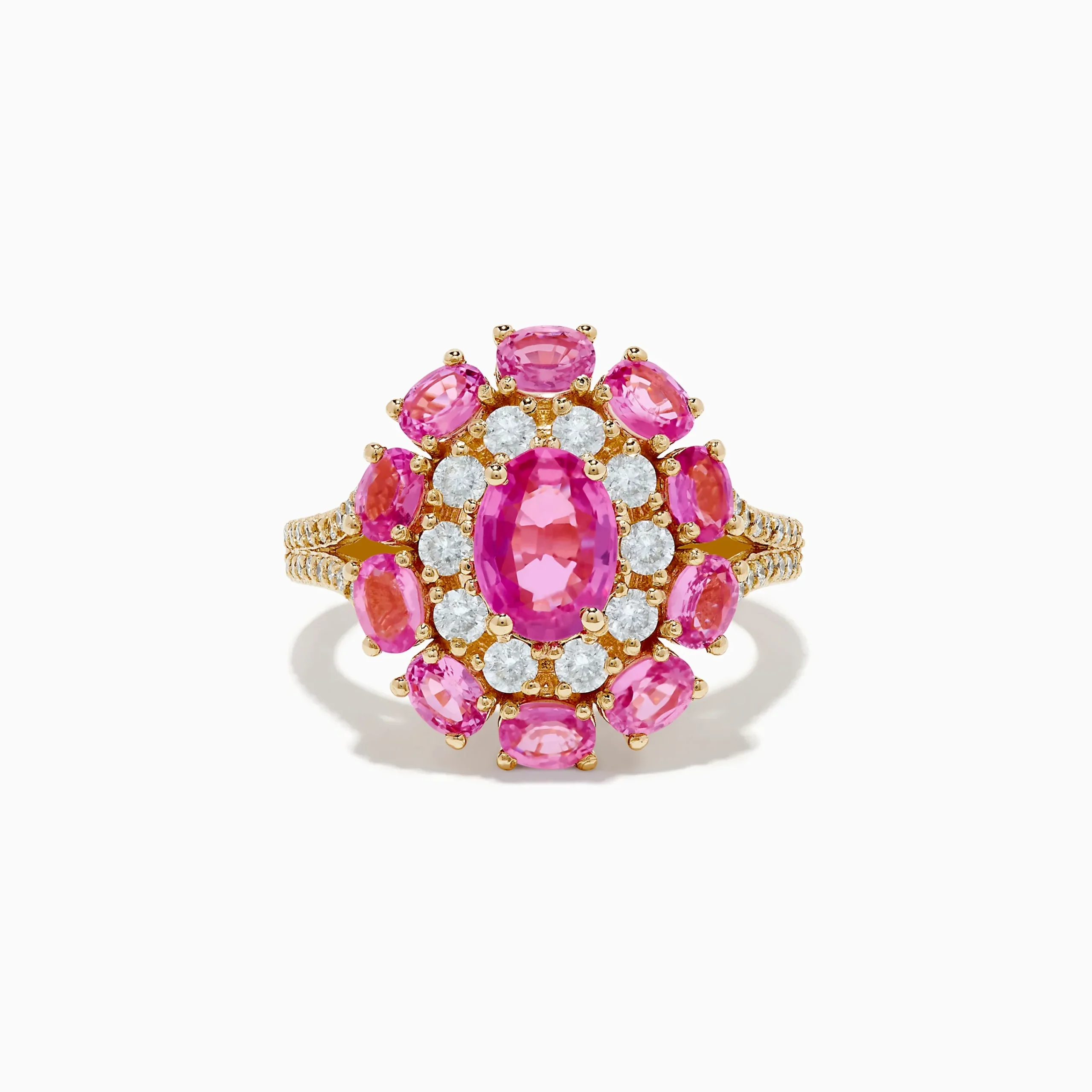 14K Yellow Gold Pink Sapphire and Diamond Ring