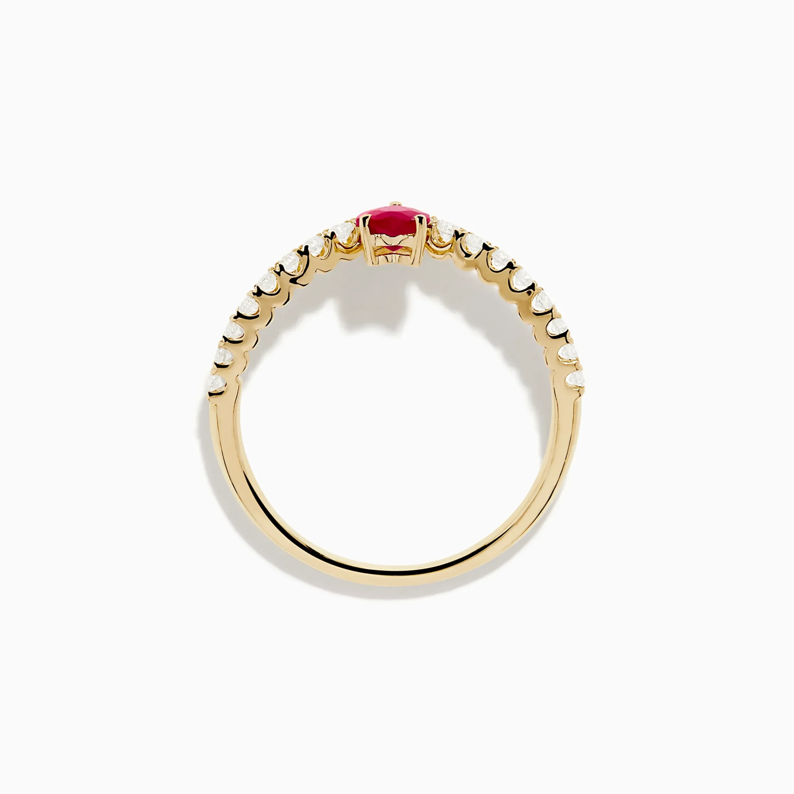 14K Yellow Gold Ruby Heart and Diamond Contoured Ring