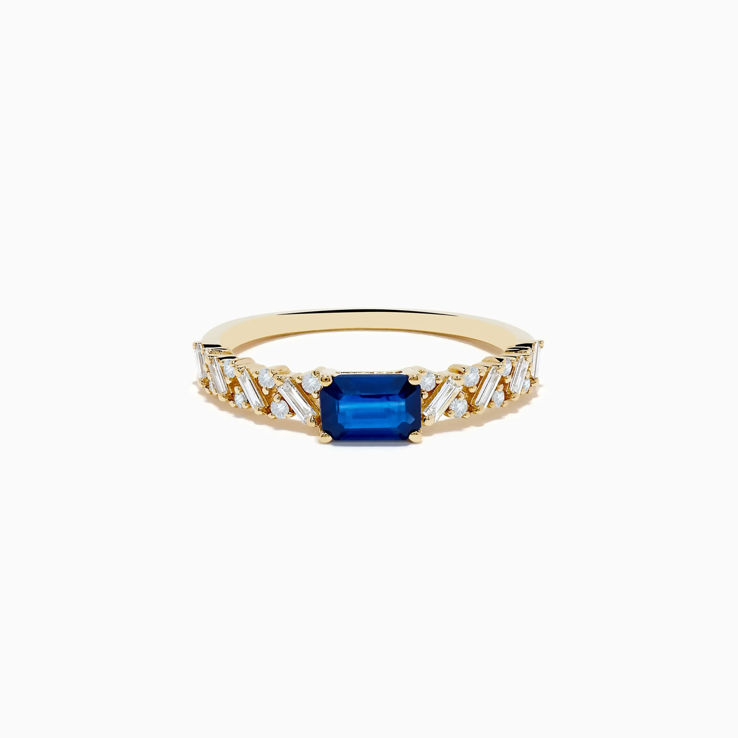 Metal:14K Gold Metal Color:YellowStone: Emerald Cut Blue Sapphire 0.66 Stone 2: Multi Shape Diamond 0.314K Yellow Gold S…