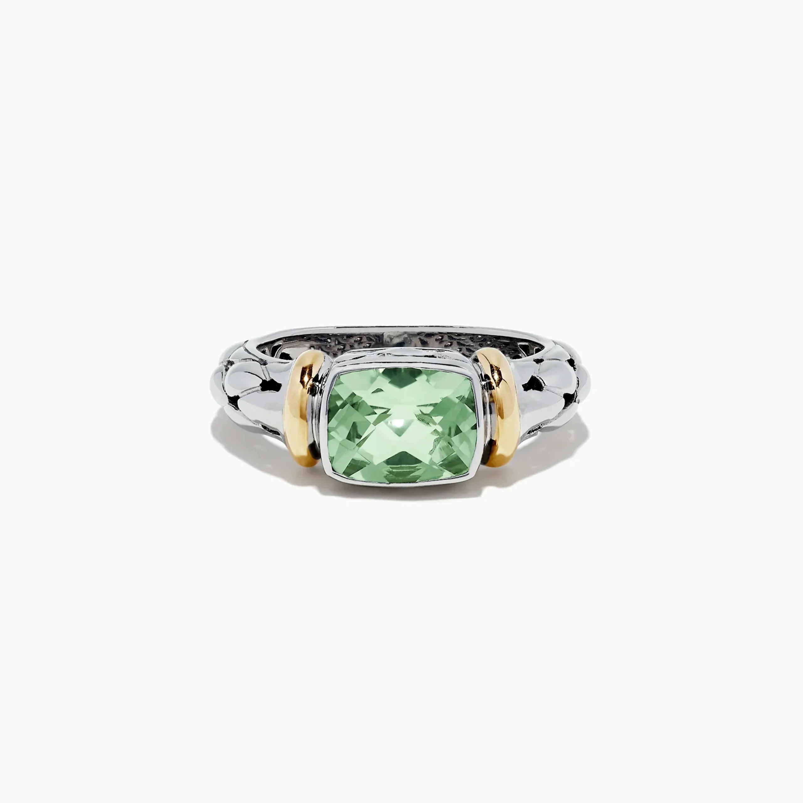 Effy 925 Sterling Silver and 18K Gold Green Amethyst Ring, 1.75 TCW