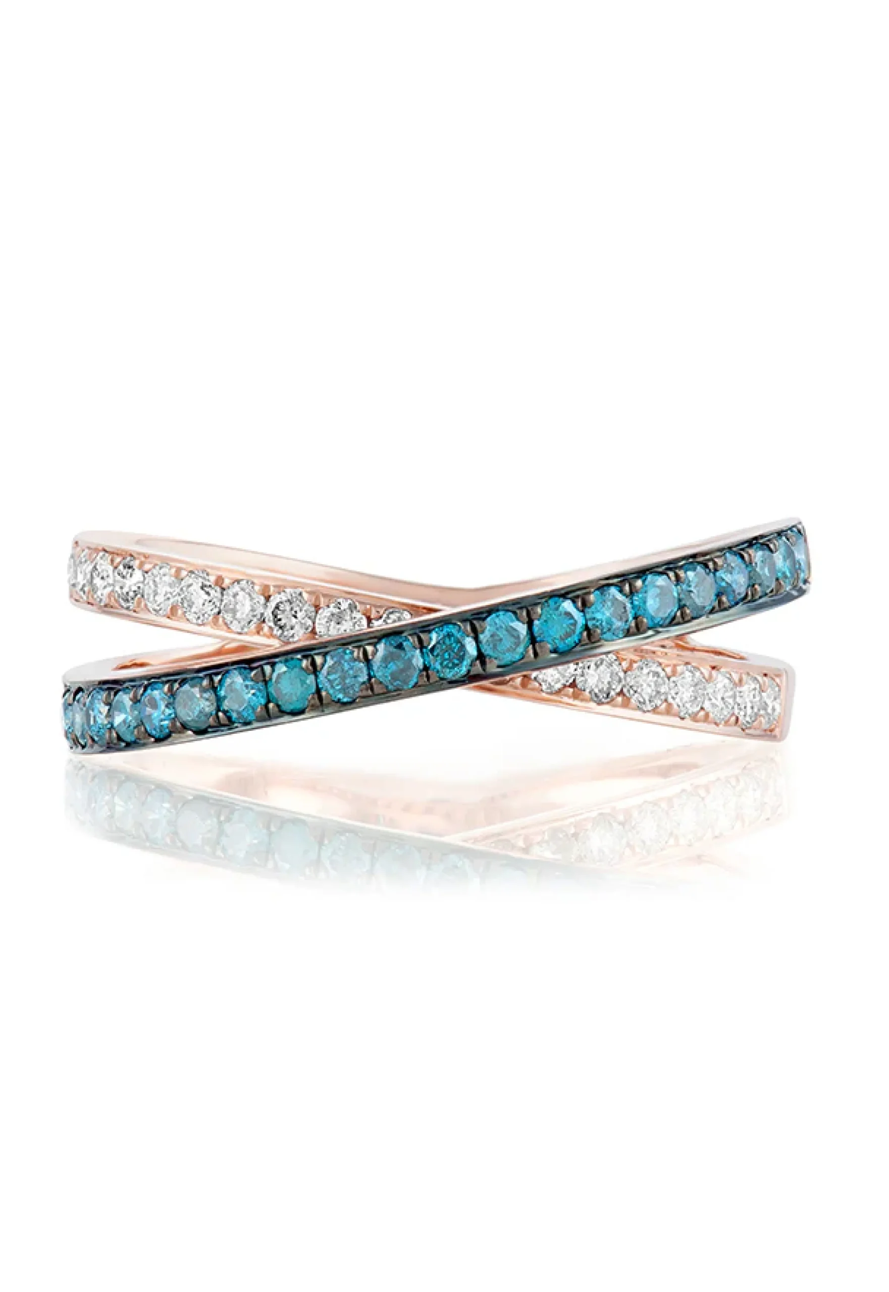 Effy Bella Bleu 14K Rose Gold Blue & White Diamond Crossover Ring, 0.57 TCW